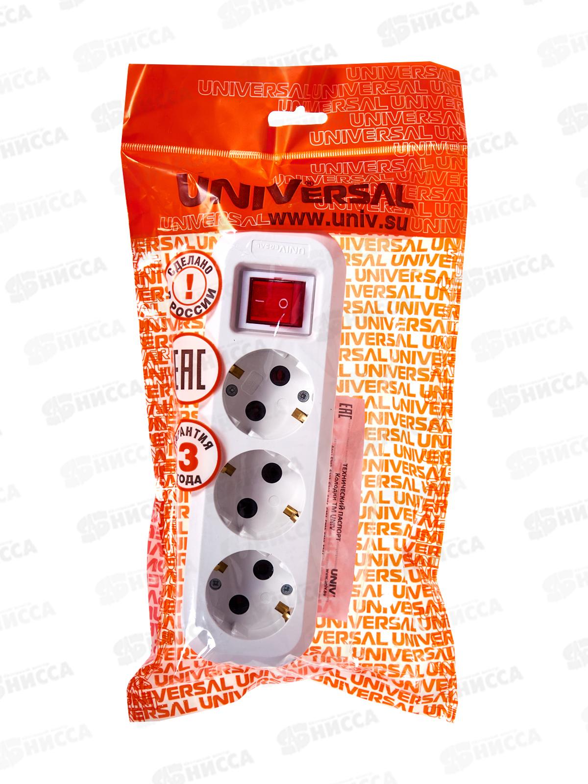 Колодка UNIVersal с заземлением 3 гнезда с выключ. АБС-пластик,S303