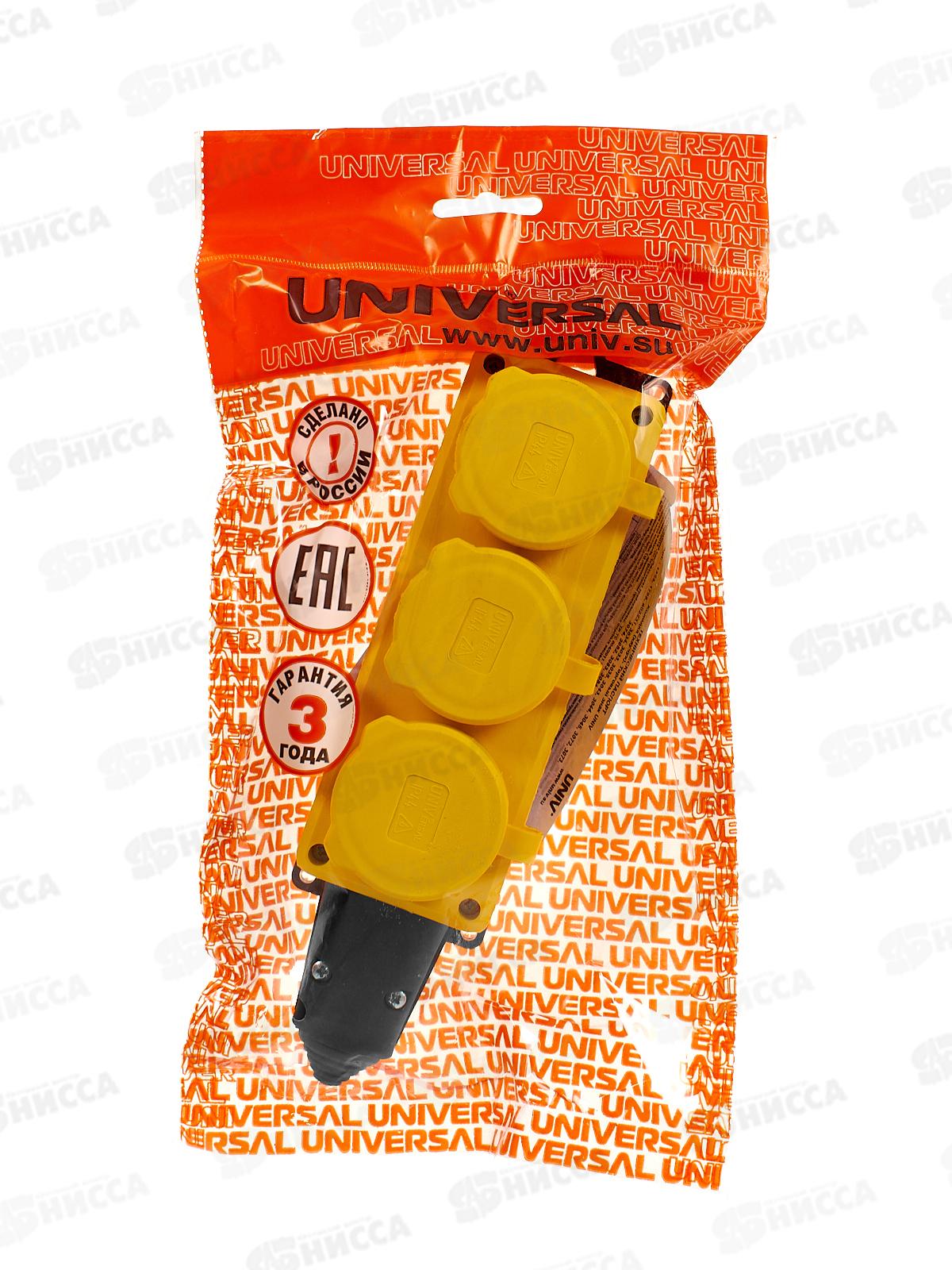 Колодка UNIVersal с заземлением 3 гнезда каучук, одноф. с заглуш., желтая, 3083