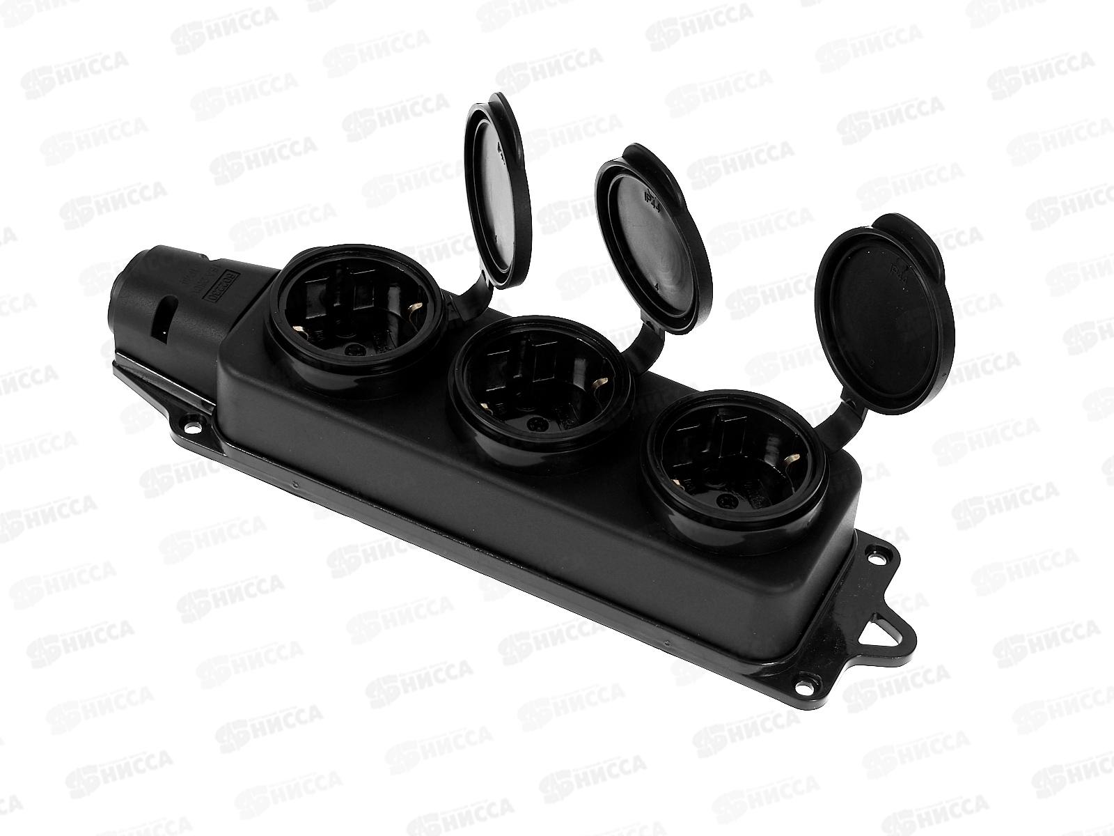 Колодка UNIVersal с заземлением 3 гнезда каучук, одноф. с заглуш., 602230