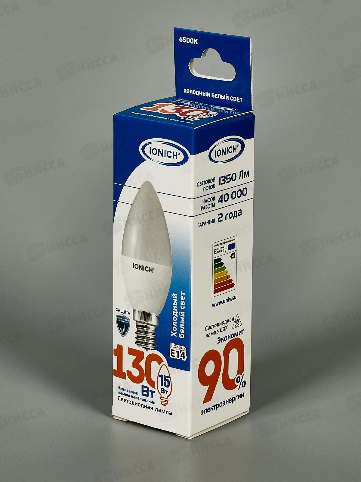 Лампа светодиодная IONICH "Свеча"E14 ILED-SMD2835-C37-15-1350-230-6.5,1906*50
