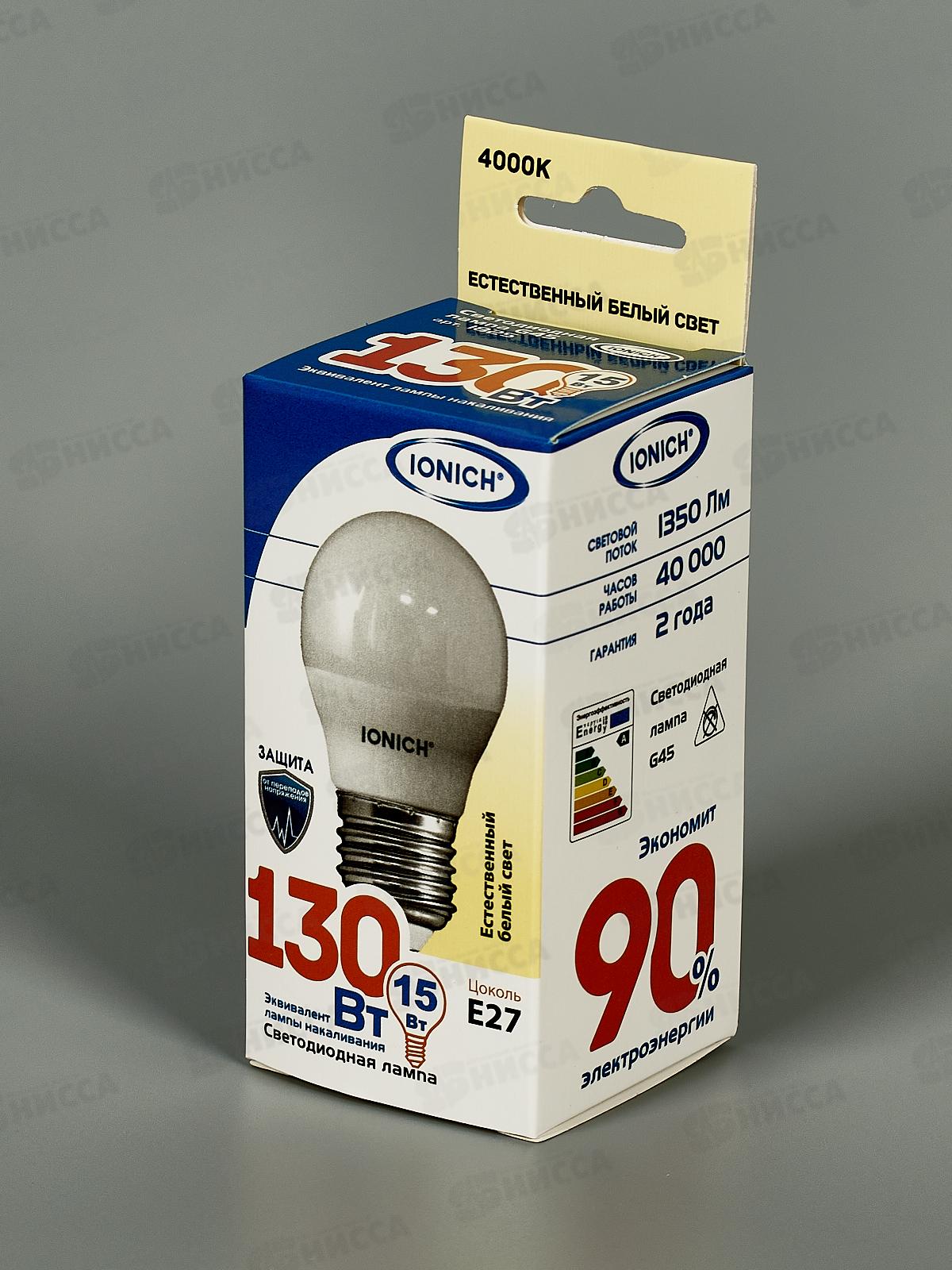 Лампа светодиод. IONICH "шар" E27 ILED-SMD2835-G45-15-1350-230-4,1825*50
