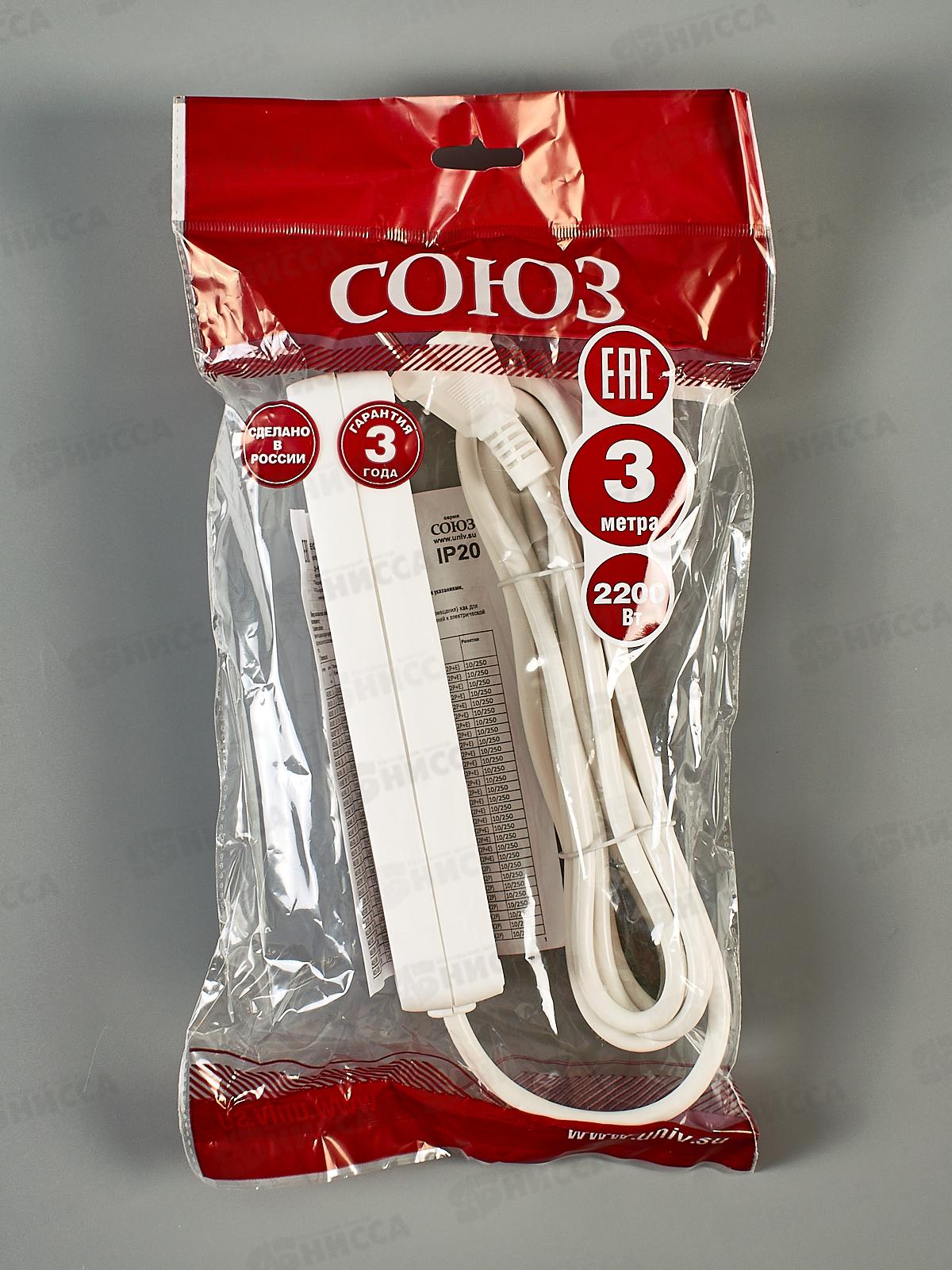 Удлинитель бытово СОЮЗ 2200ВТ 4гн. ПВС , б/з 3м, 481S-1403