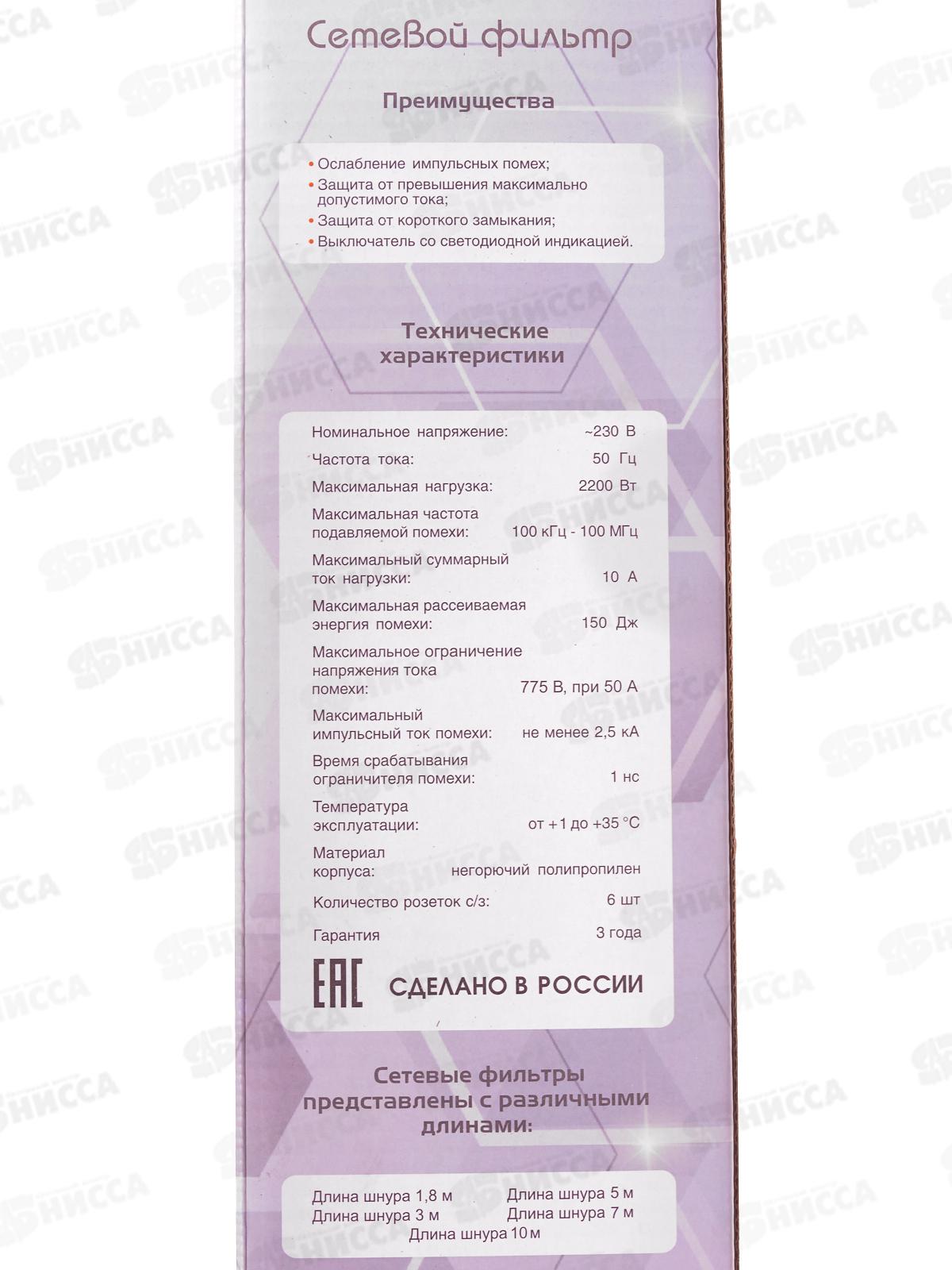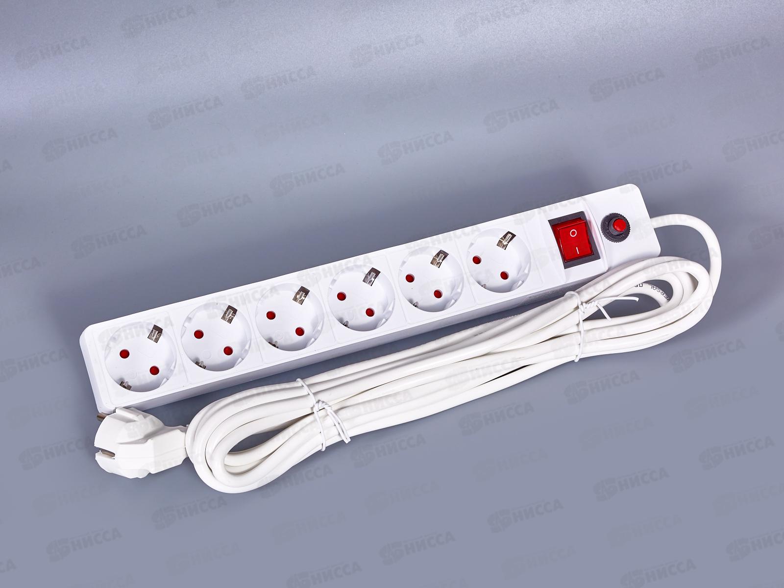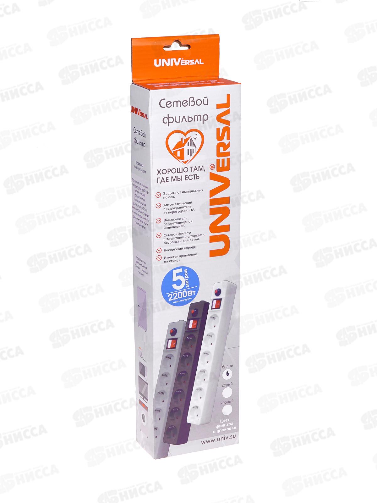 Сетевой фильтр UNIVersal ПВС 3*0,75 6 гнезд, 5м выключатель с индикатором с/з,з/щ бел