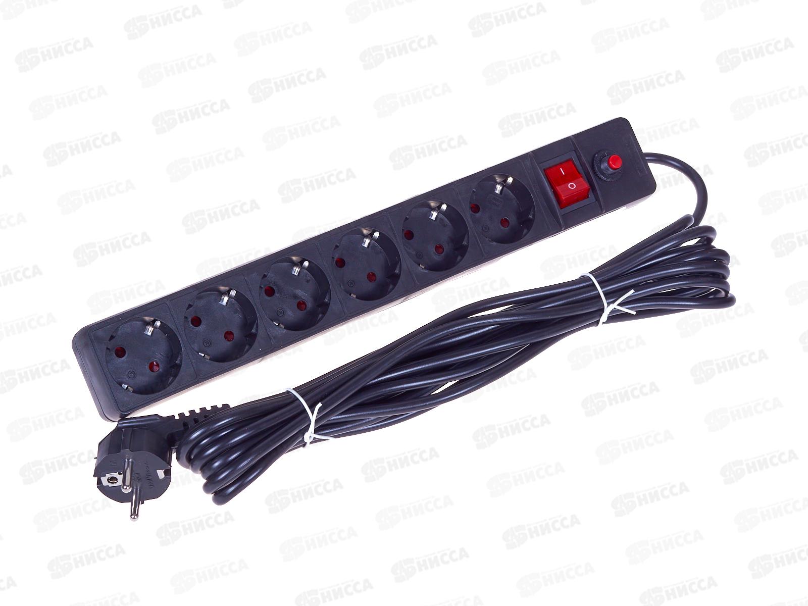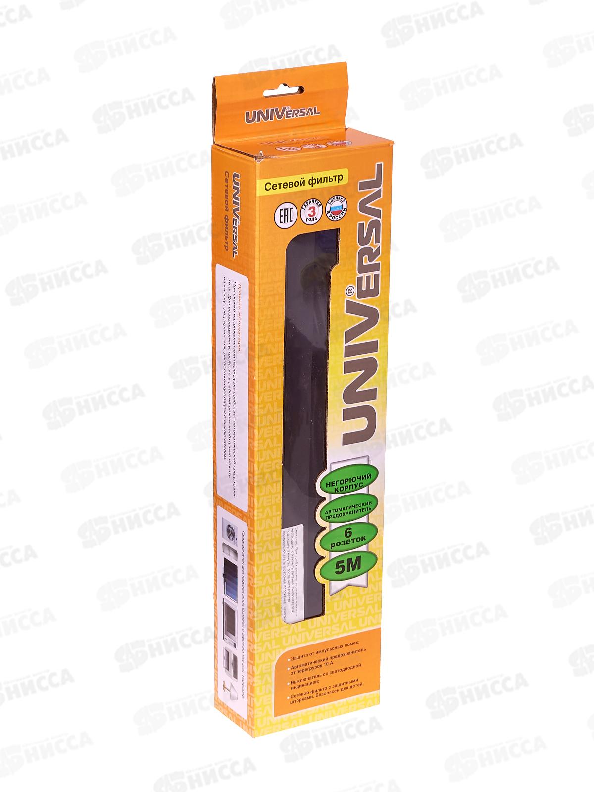 Сетевой фильтр UNIVersal ПВС 3*0,75 6 гнезд, 5м выключатель с заземлением, з/щ черный, 967U-4005
