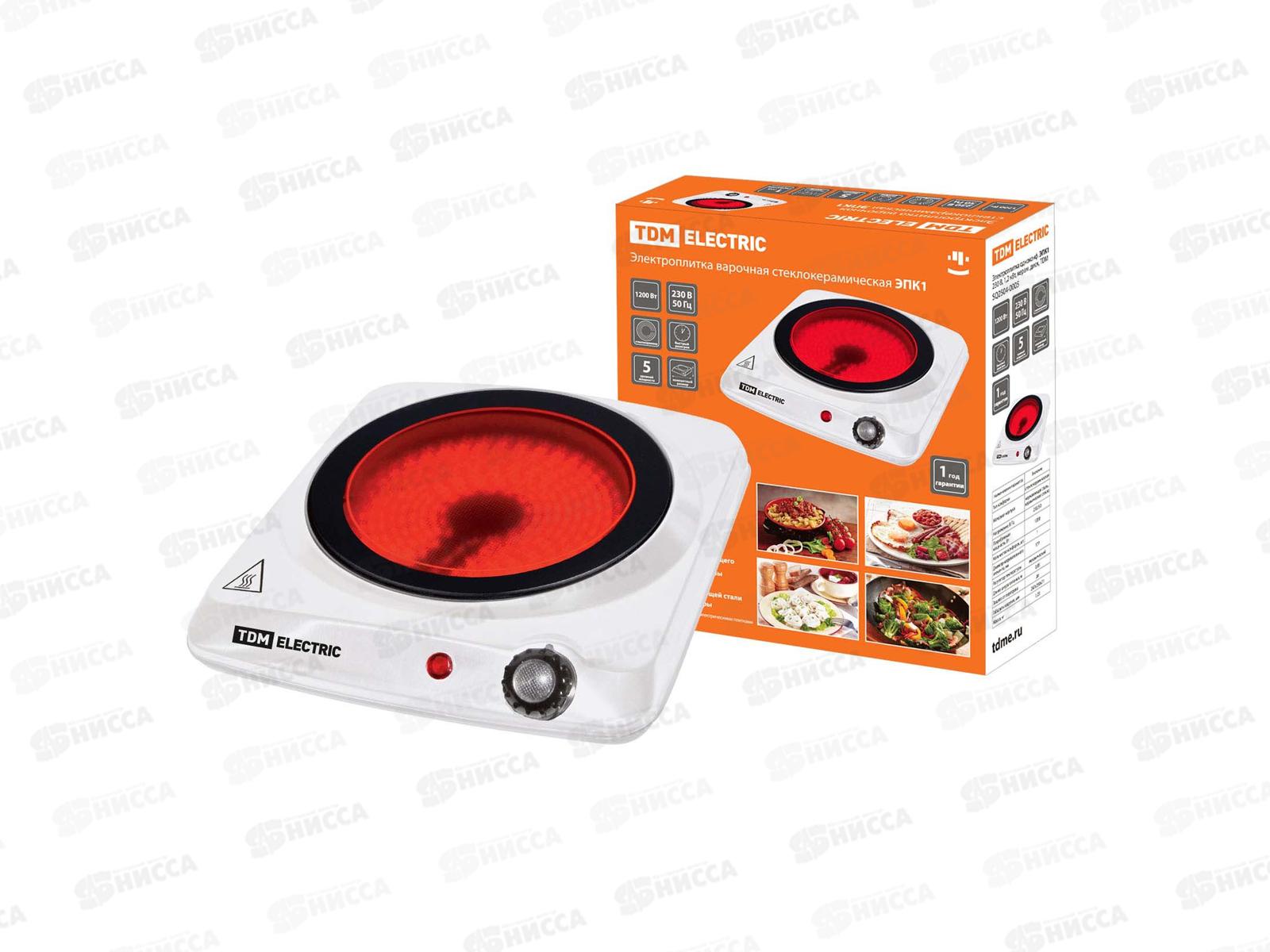 Плита электрическая одноконфорочная ЭПК1 1.2кВт стеклокерамика, TDM, 0005