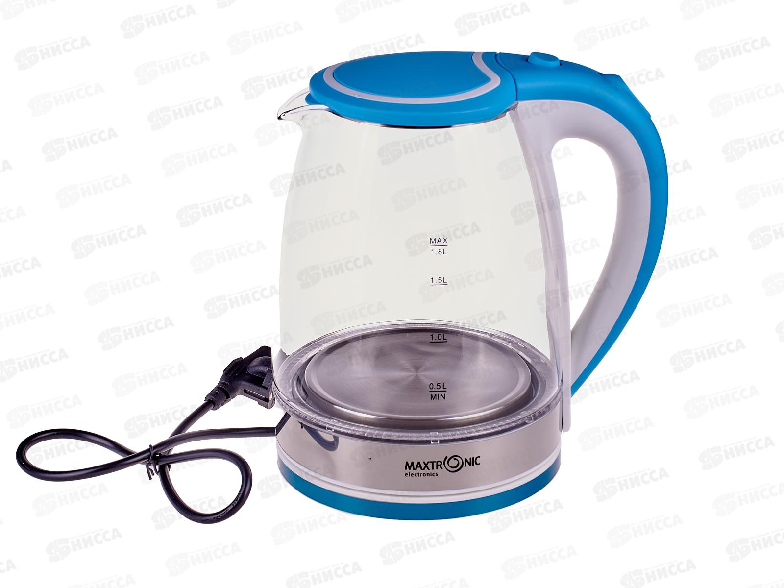 Электрический чайник Maxtronic MAX-204 в стеклянном корпусе. Мощность электрочайника: 1800 Вт. Объем: 1,8 л. Электрочайник автоматически выключается при закипании воды, а особая конструкция дна с дисковым нагревательным элементом обеспечивает быстрый нагрев воды, что позволяет экономить электроэнергию. Защита от включения без воды. Поворачивающийся корпус на 360 градусов. Световой индикатор включения/выключения. Подсветка. Шкала уровня воды.