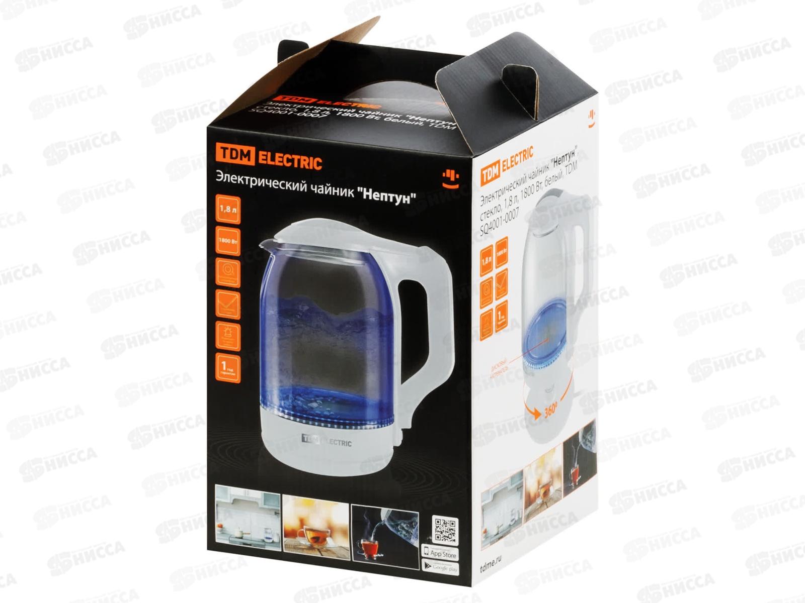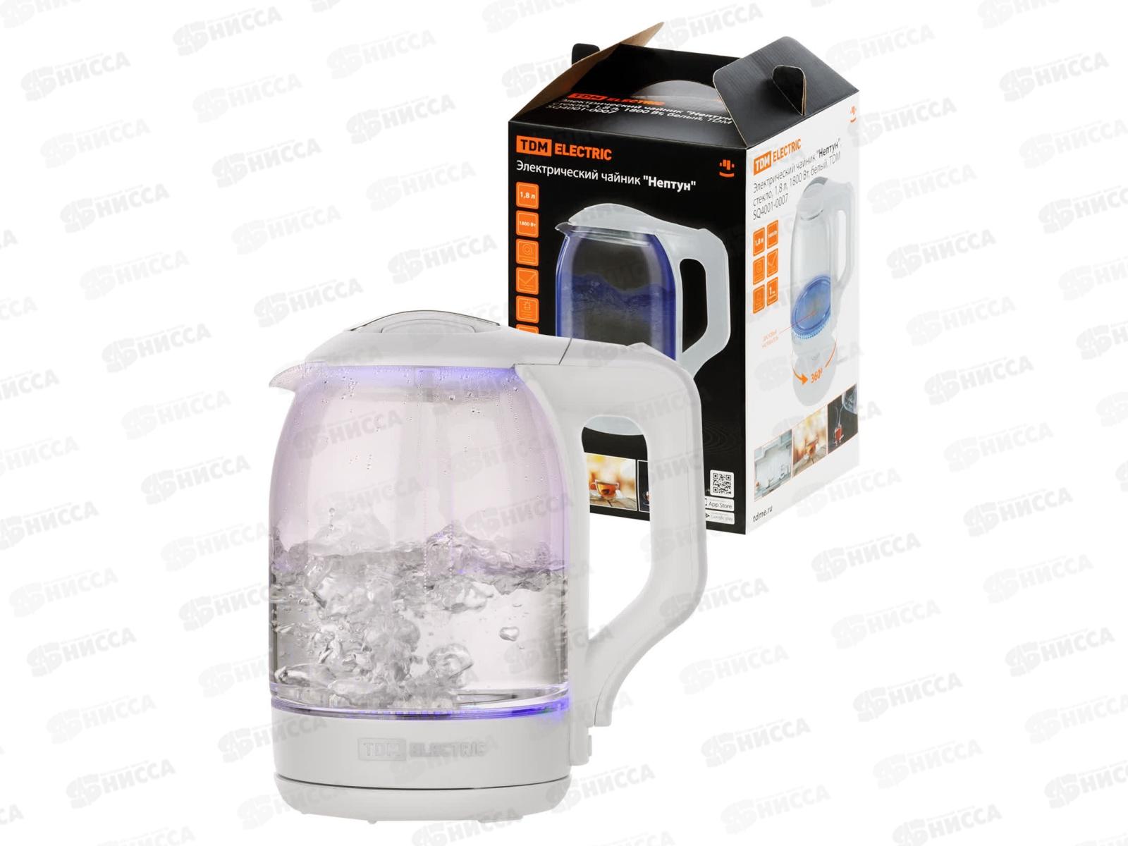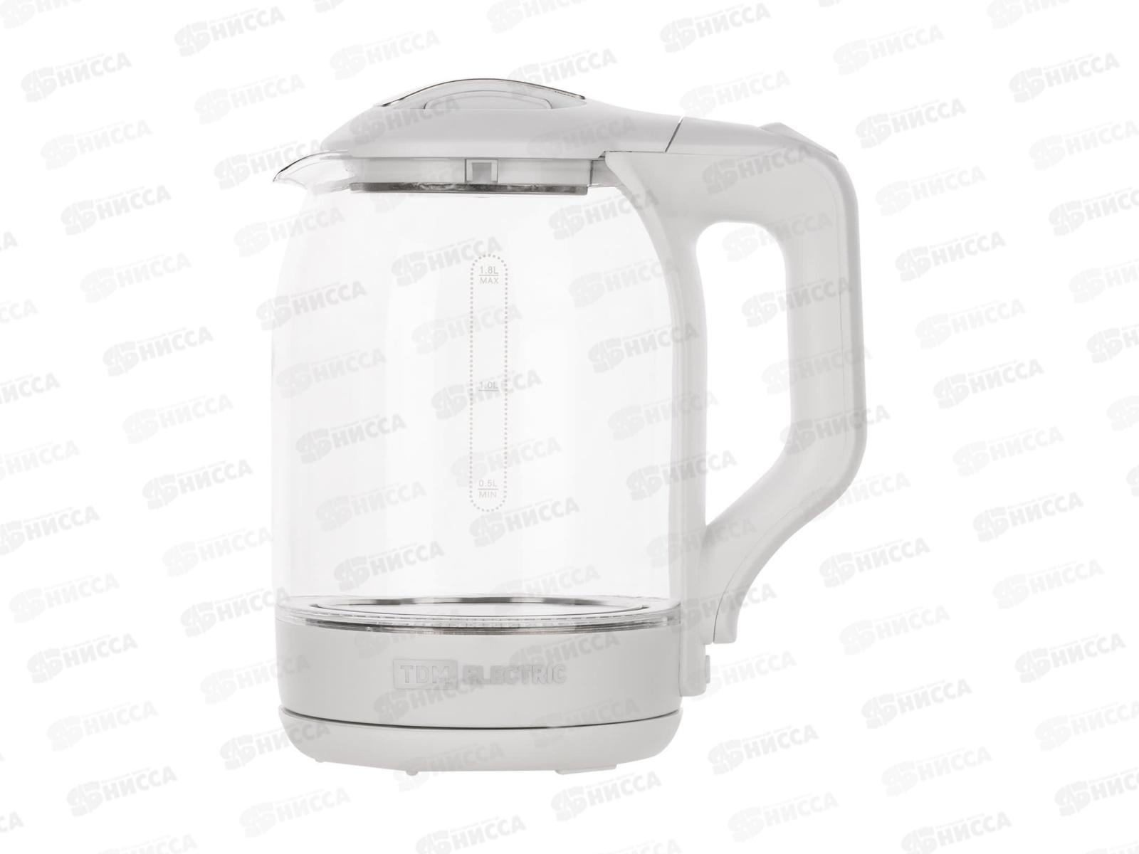 Чайник электр. TDM Нептун, стекло, 1.8л, 1800Вт, белый, 0007 *12