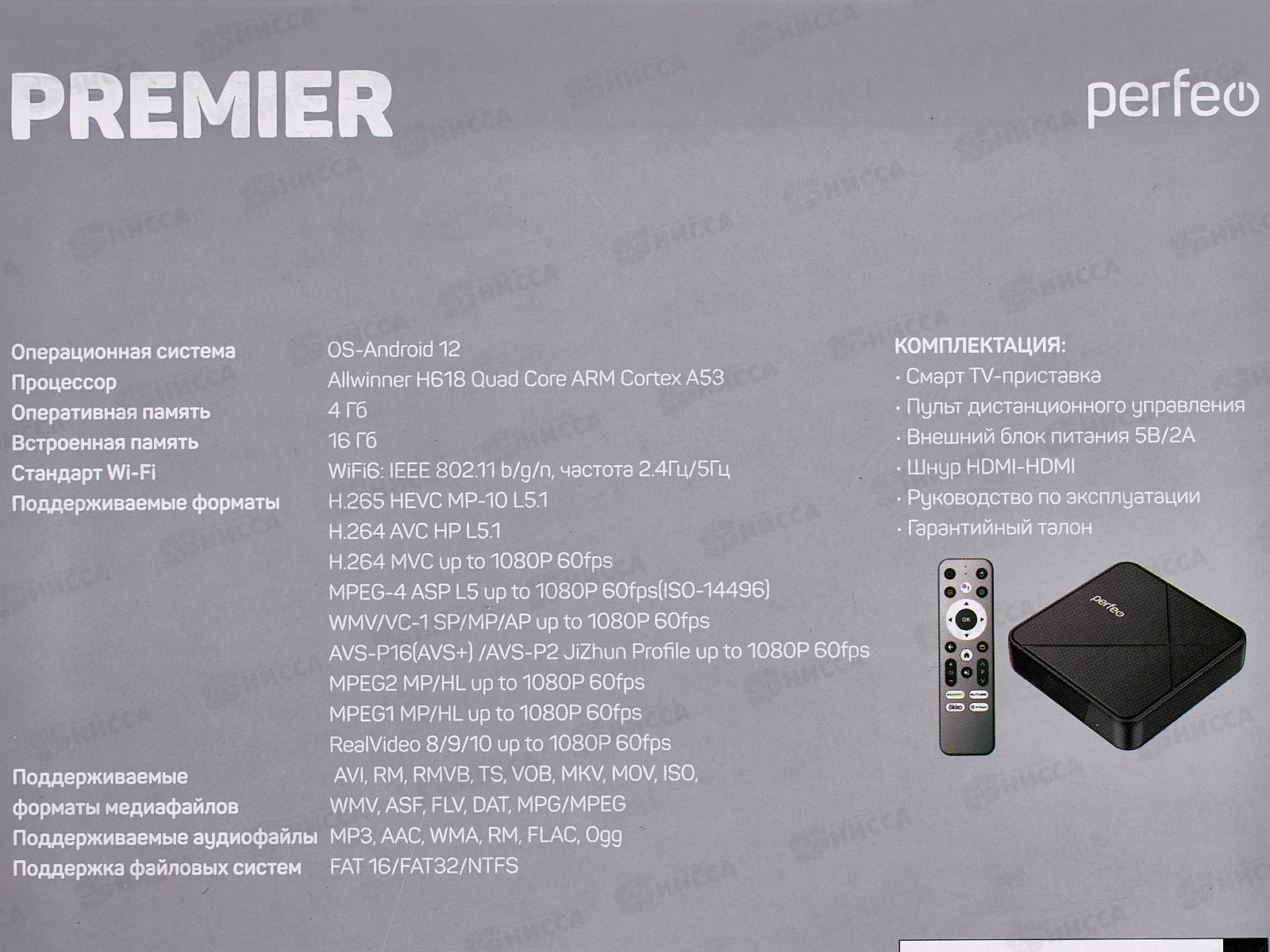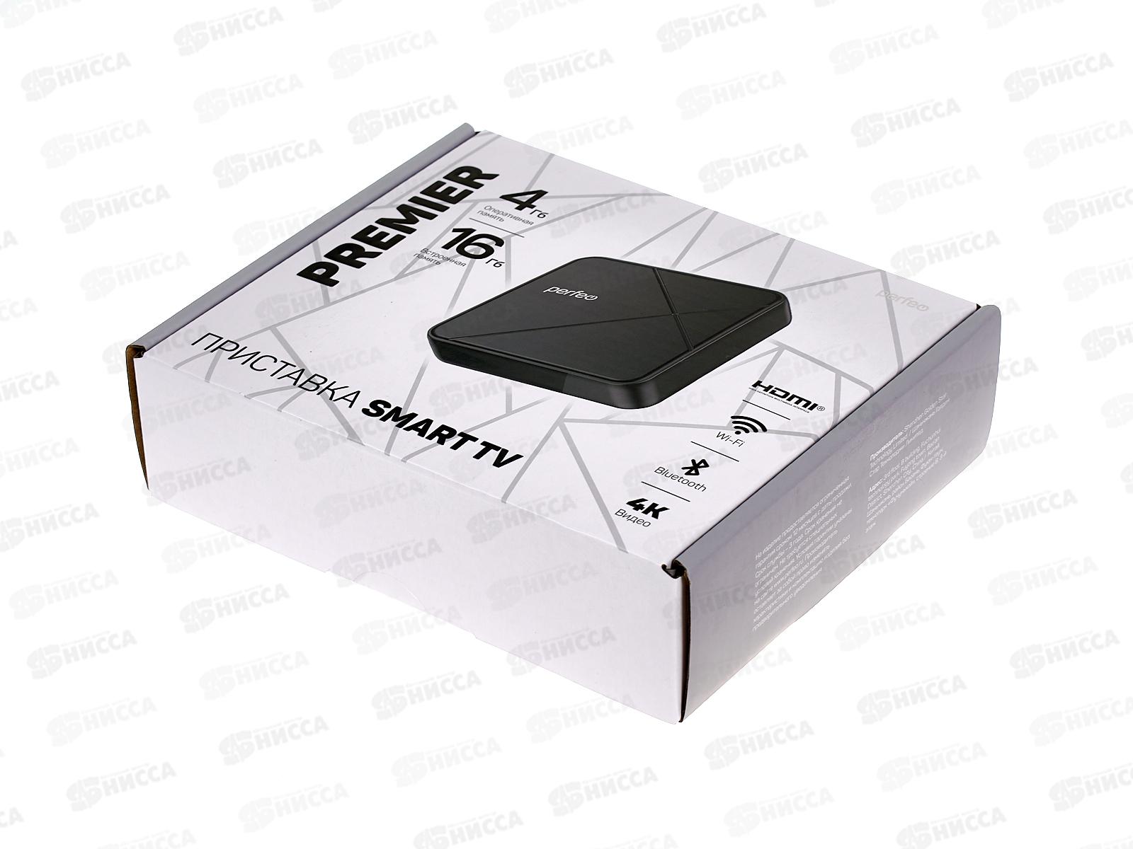 ТВ-приставка Perfeo Smart-TV BOX "PREMIER 4/16", Allwinner H618, Android 12, 4Gb/16Gb, HDMI/AV, Пульт Bluetooth