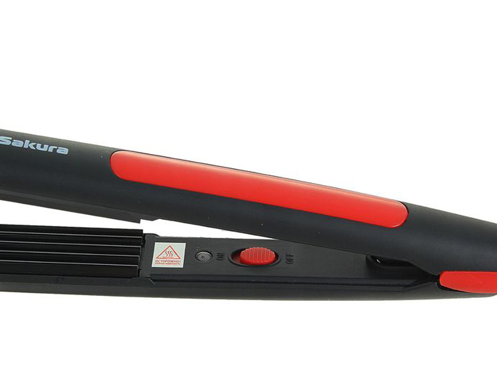 30Вт, гофрированные пластины 85х22 мм, нагрев до 200С, кнопка вкл/выкл, световой индикатор работы, длина кабеля питания 1,8 м. Цвет: чёрный/красный.