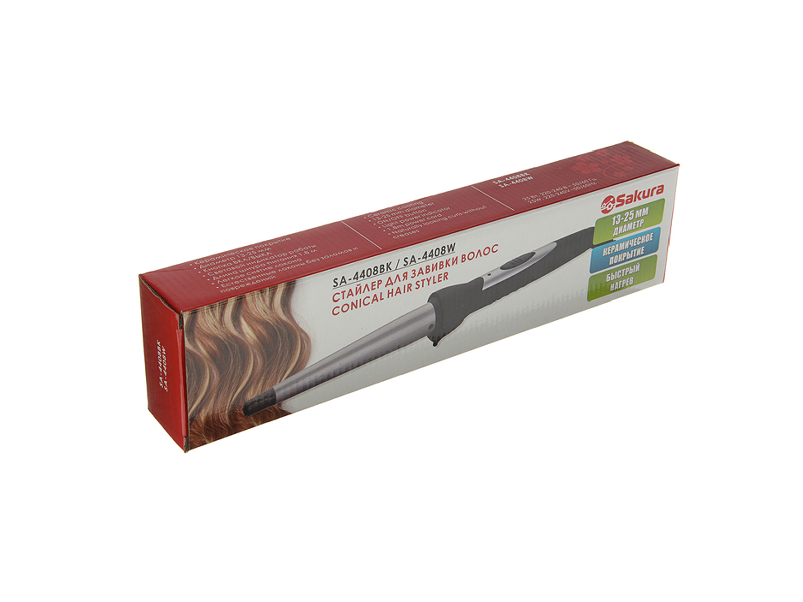 25 Вт, диаметр 13-25 мм, керамическое покрытие, лёгкое снятие локона без заломов и повреждений, кнопка вкл/выкл, световой индикатор