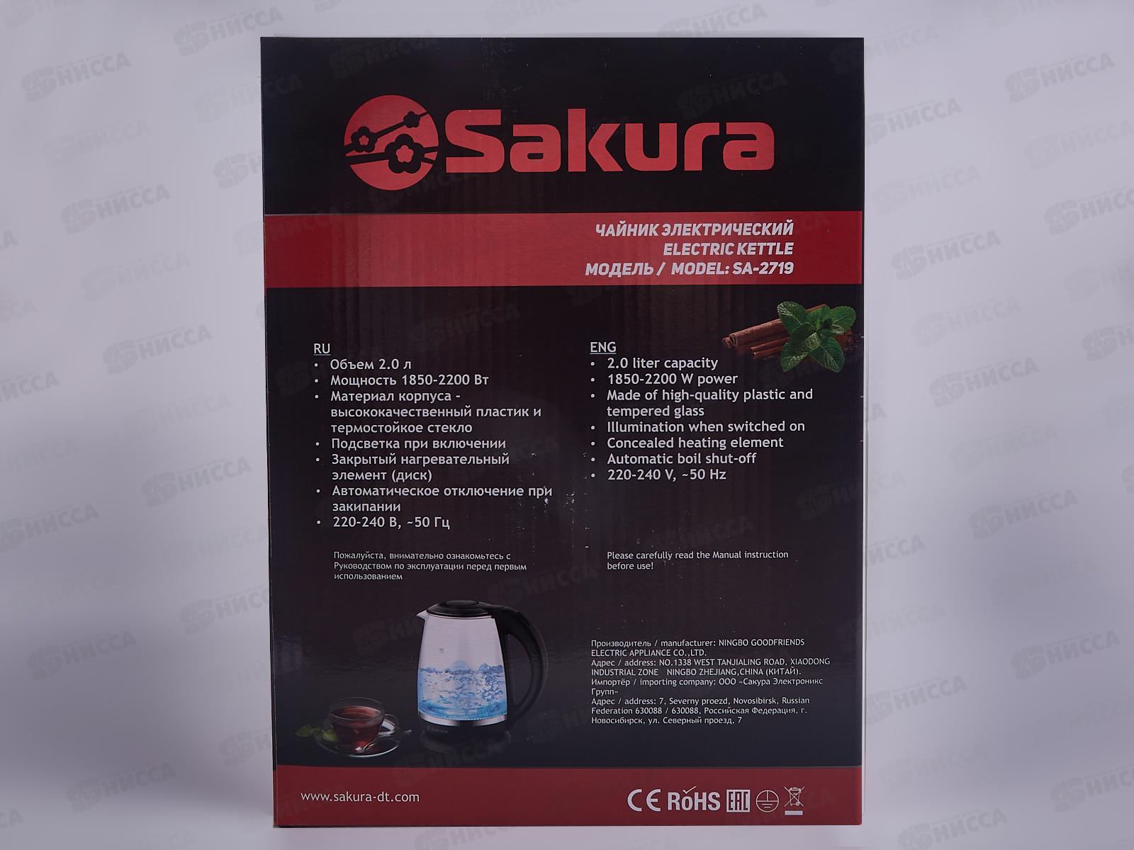 Чайник электрический SA-2719ВК (2.0) стекло с подсветкой
