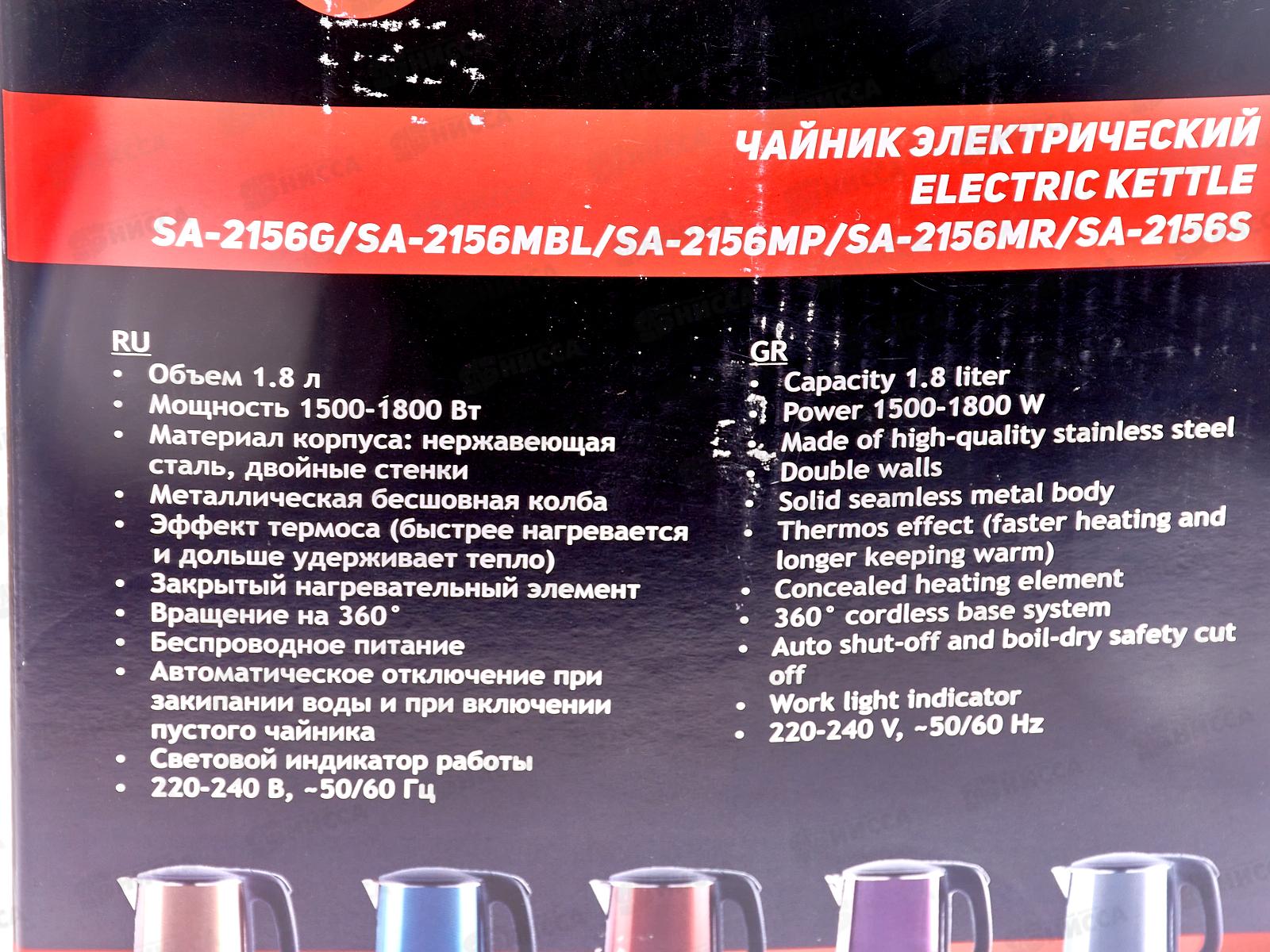 Чайник электрический SA-2156MR 1,8л красный металлик+черный