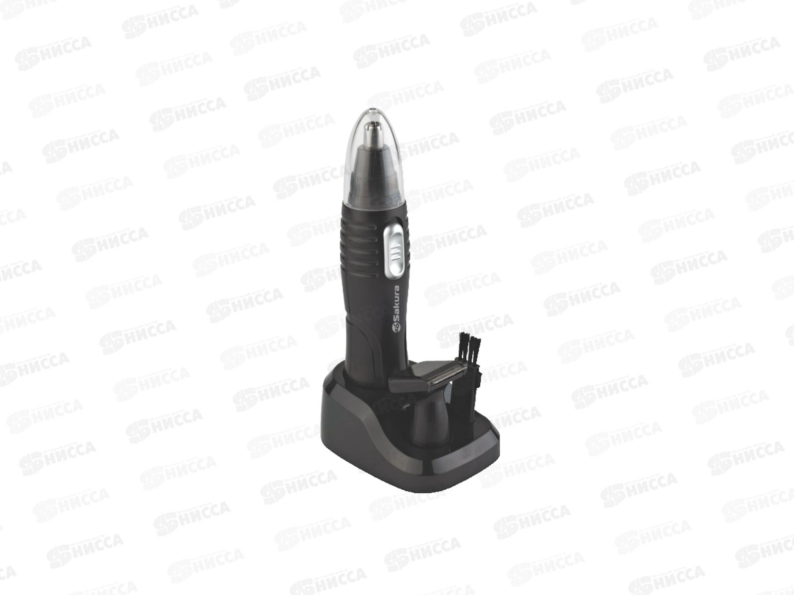 Триммер универсальный, 2 насадки (круглая - для носа и ушей; плоская горизонтальная - для висков, бороды, усов, бровей), острые стальные лезвия. В комплекте - защитный колпачок и подставка для хранения.
