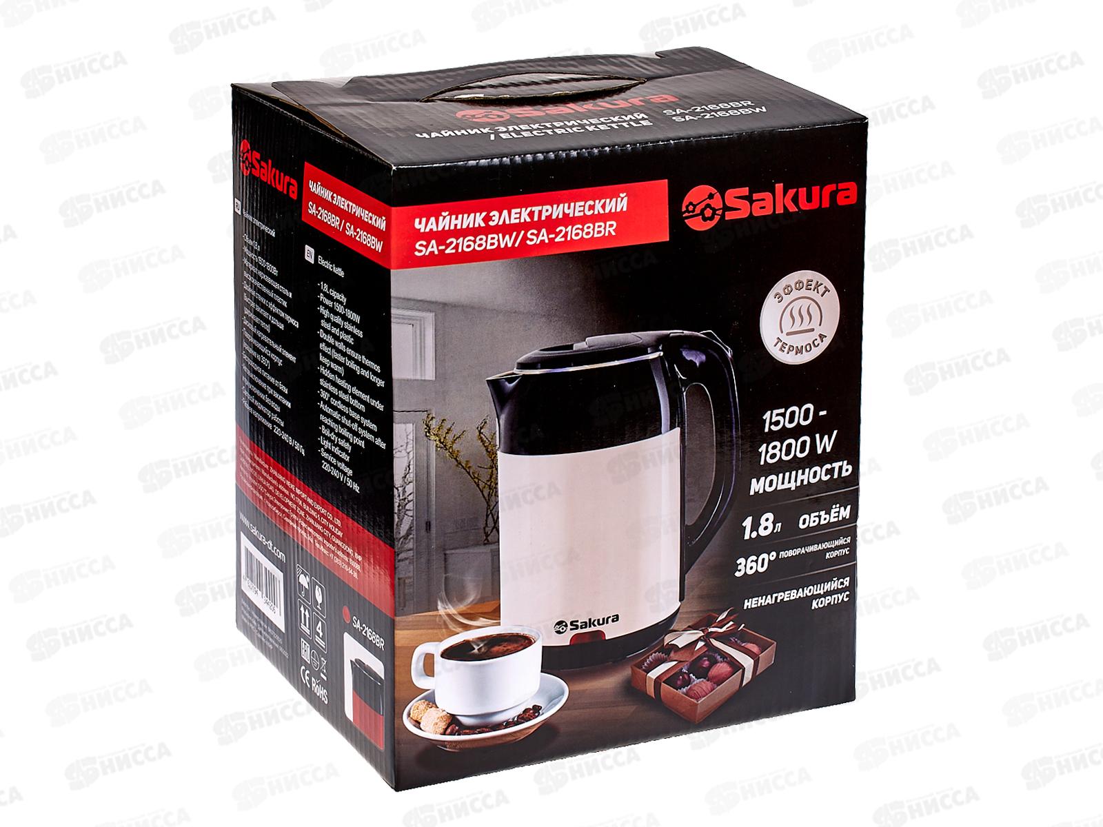 Чайник электрический SA-2168BW 1,8л черно-белый диск
