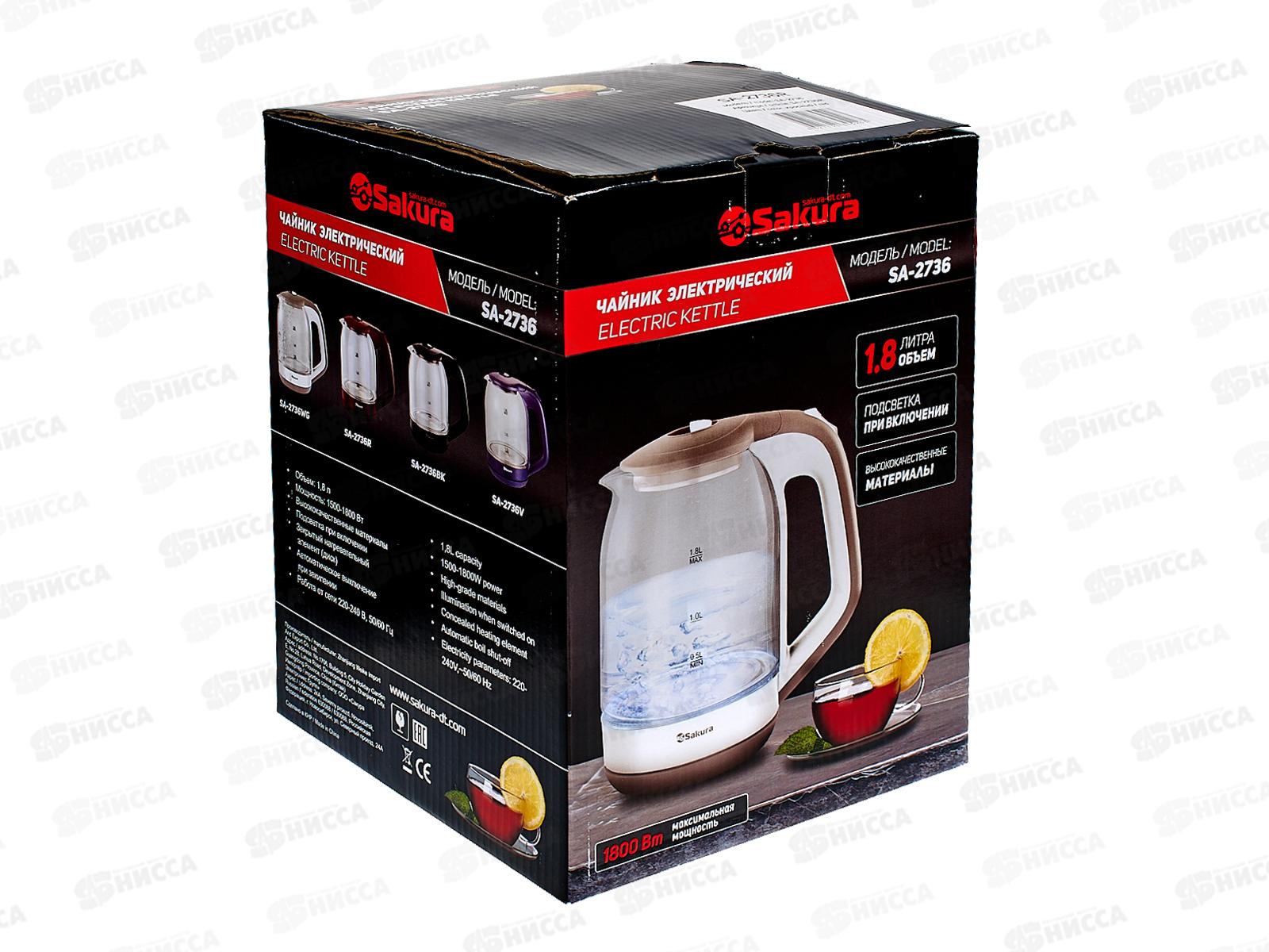 Чайник электрический SA-2736BK 1,8л стекло подсветка