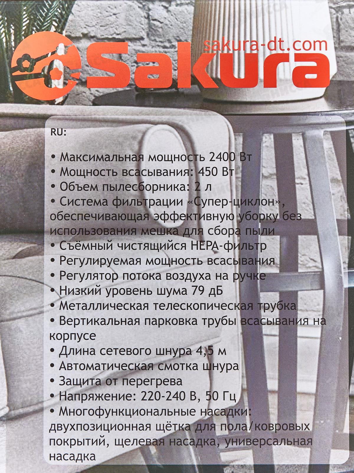 Пылесос SA-8314R 2400Вт без мешка НЕРА красный