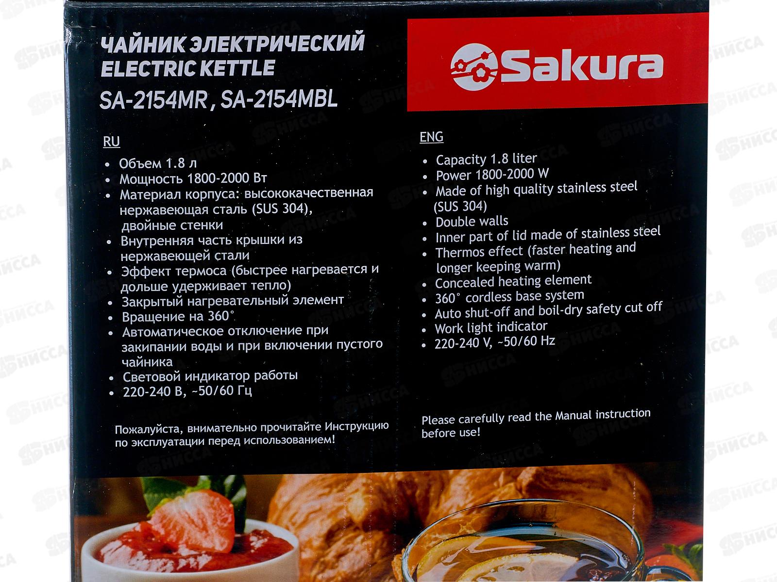 Чайник электрический SA-2154MBL 1,8л синий металик диск