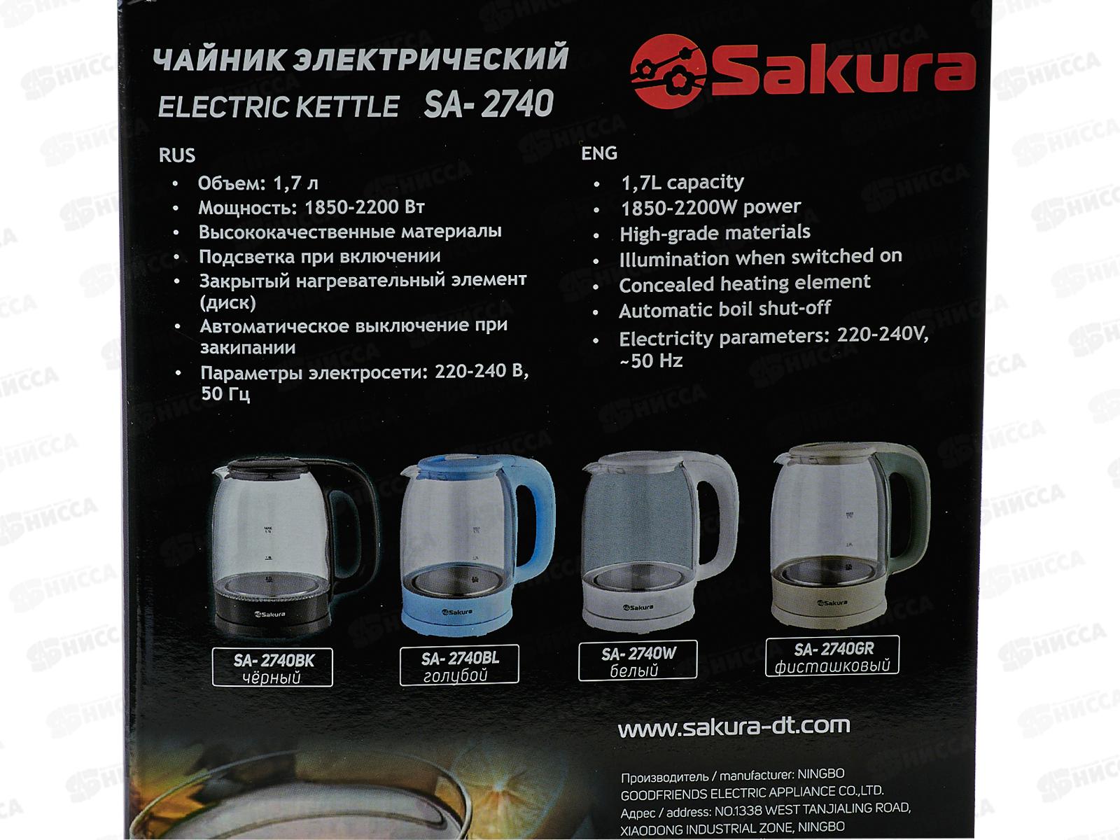 Чайник электрический SA-2740BL 1,7л стекло подсветка