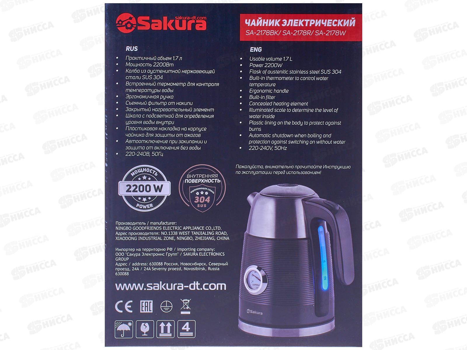 Чайник электрический SA-2178R Premium 1,7л нержавейка