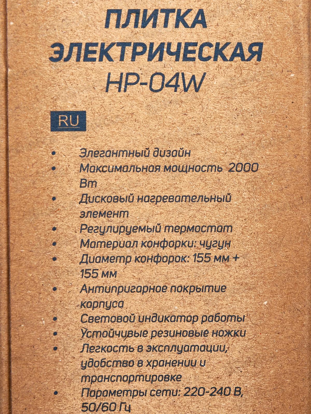 Плита электрическая HP-04W 2000Вт белая 2 конфорка диск