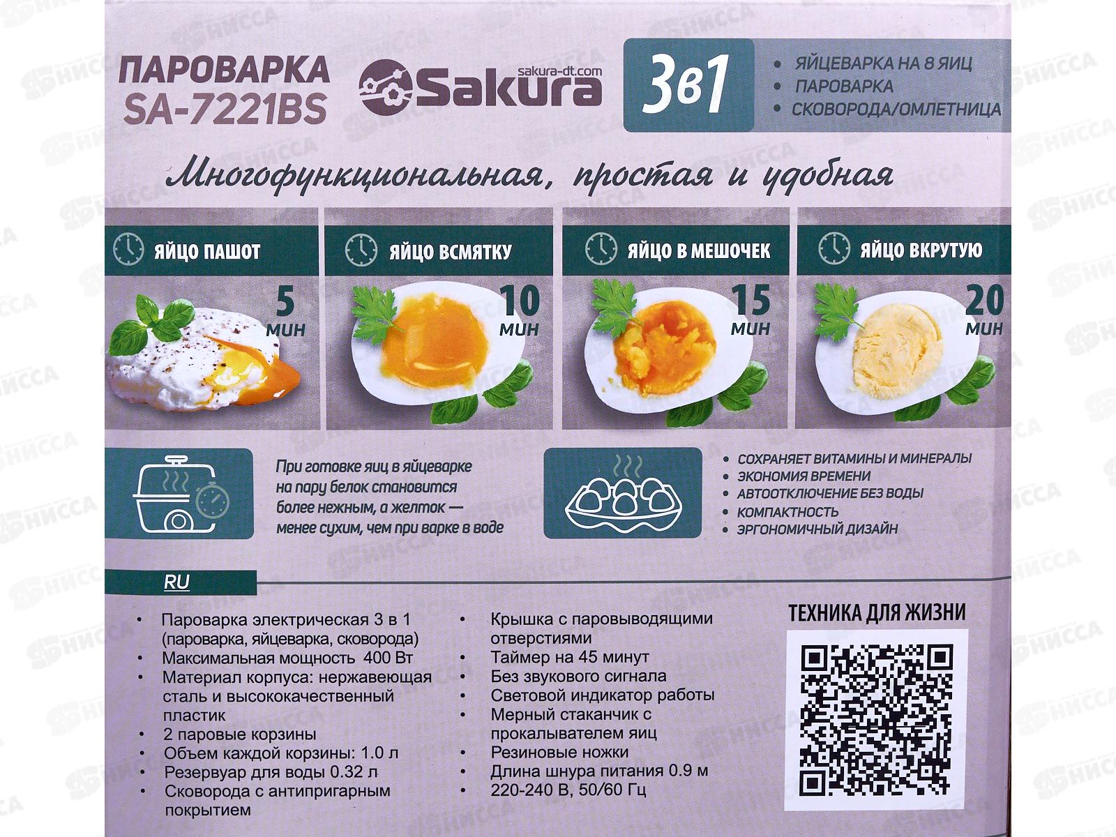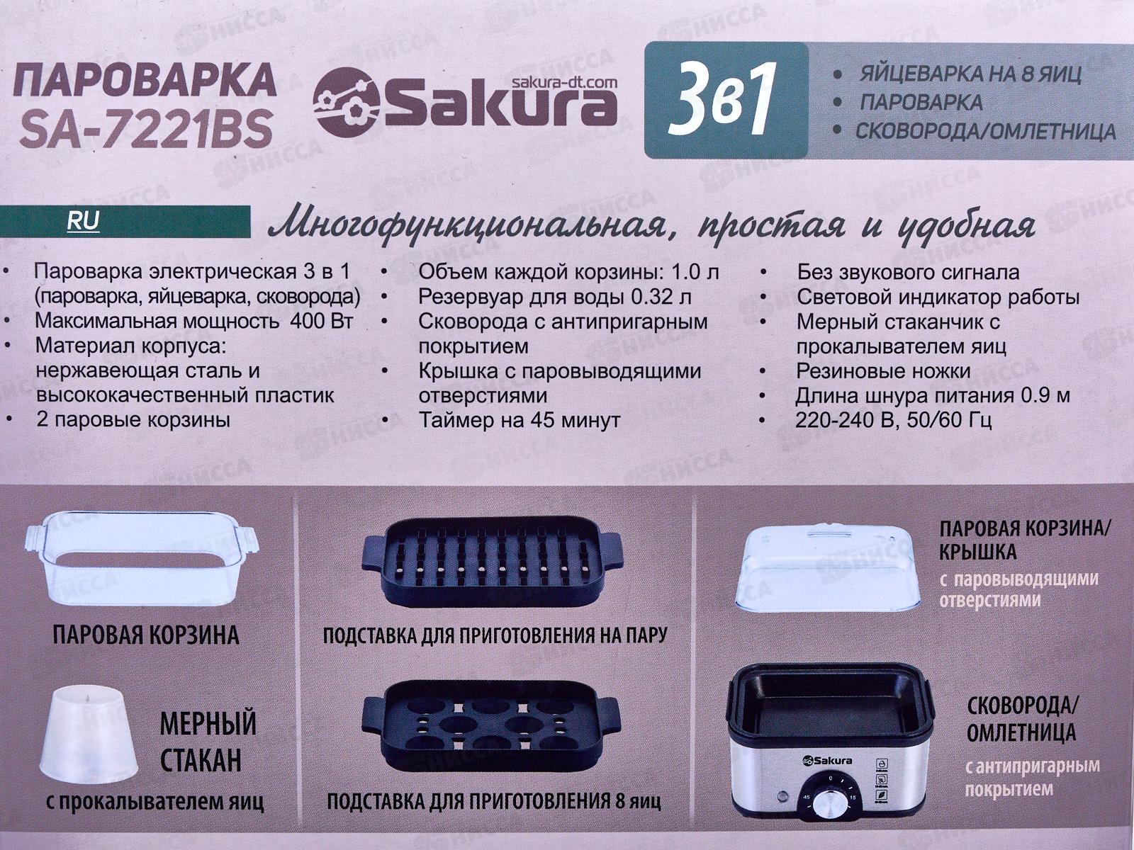 Пароварка SA-7221BS 3в1 2л 300/400Вт черная
