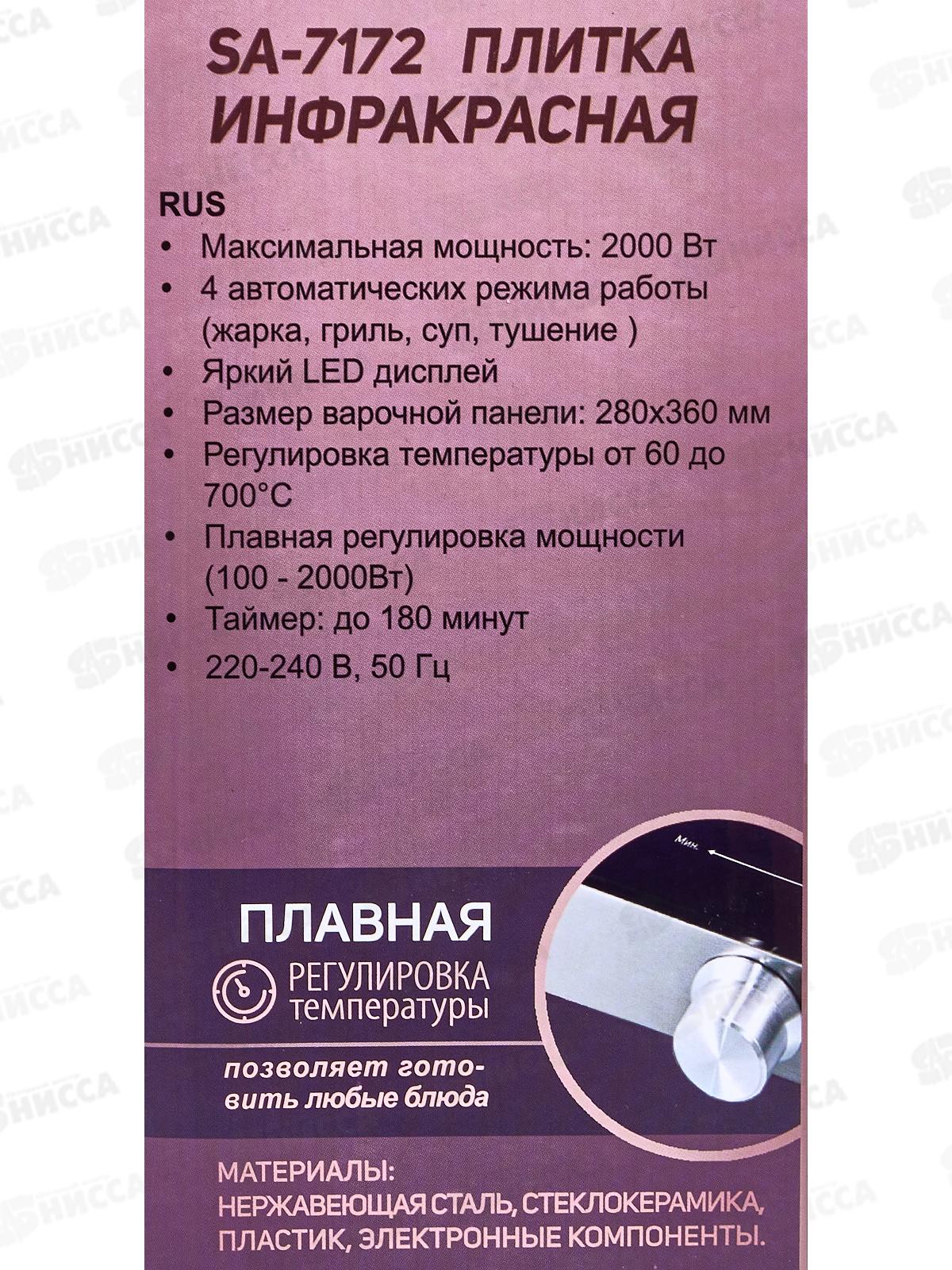 Плита индукц.SA-7172 1 конф 4 авт программы