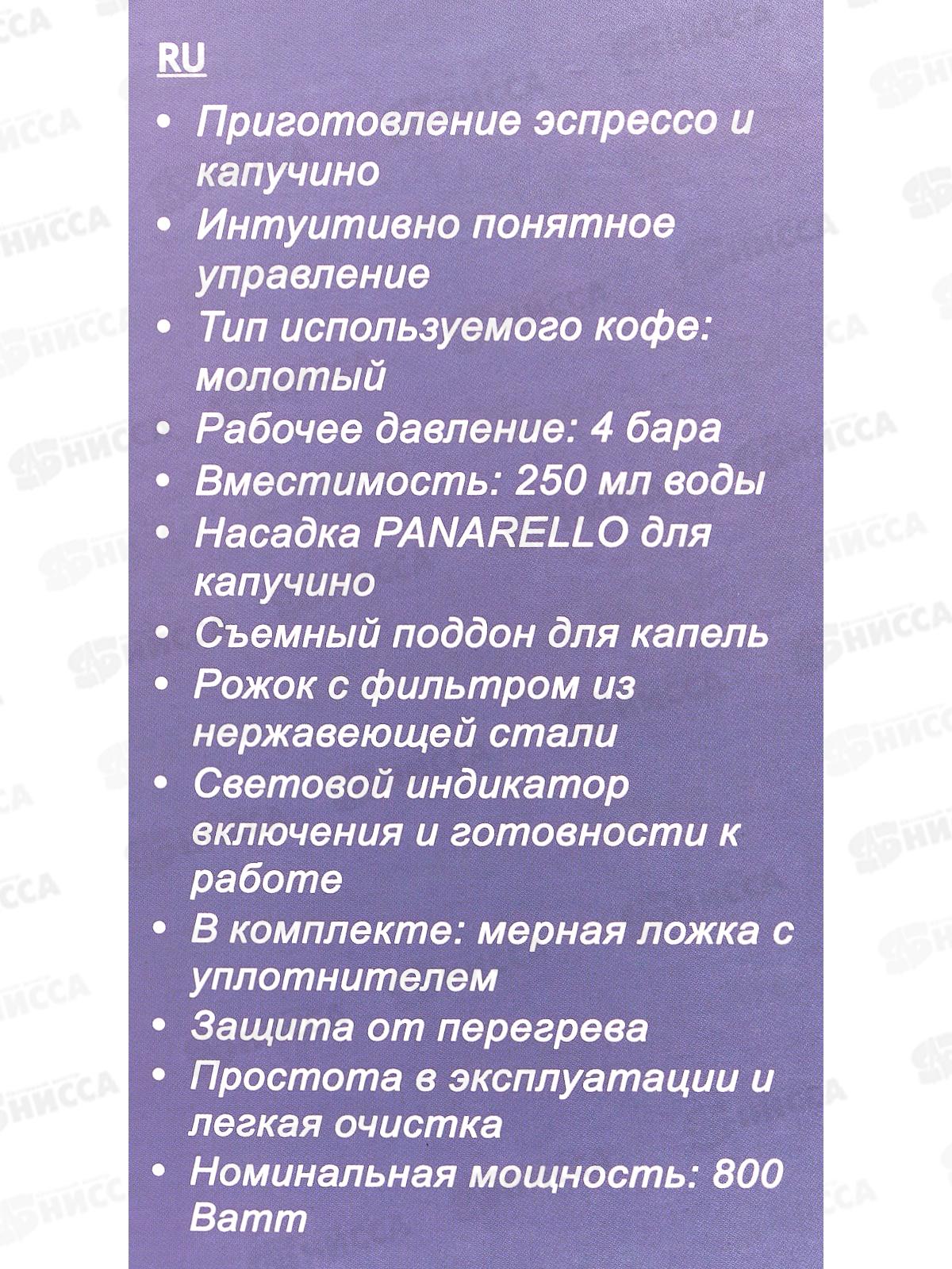 Кофеварка SA-6115 рожк 0,25л 4бар 800Вт