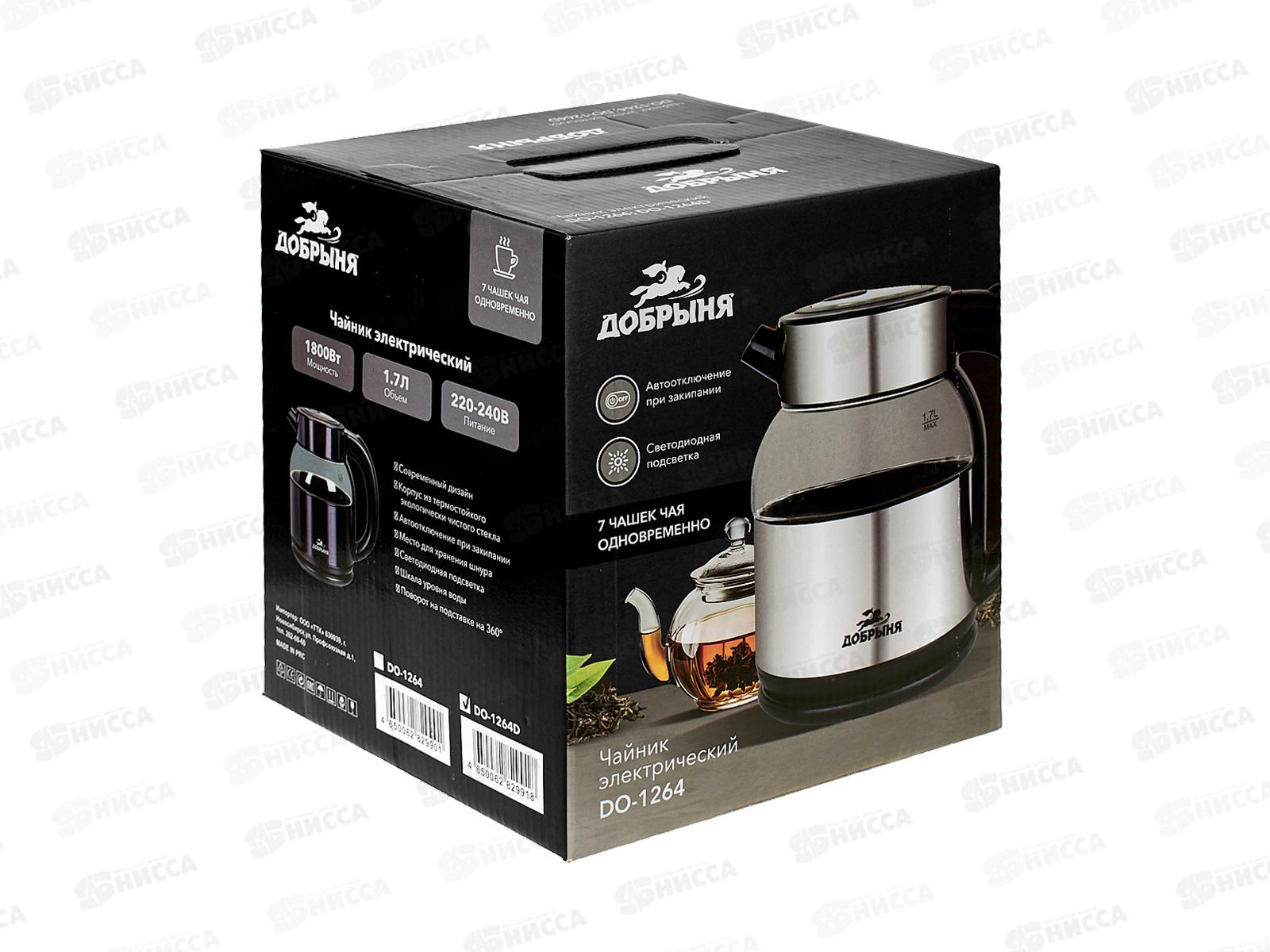 Чайник электрический DO-1264D 1800Вт 1,7л стекло, металл чернильный цв