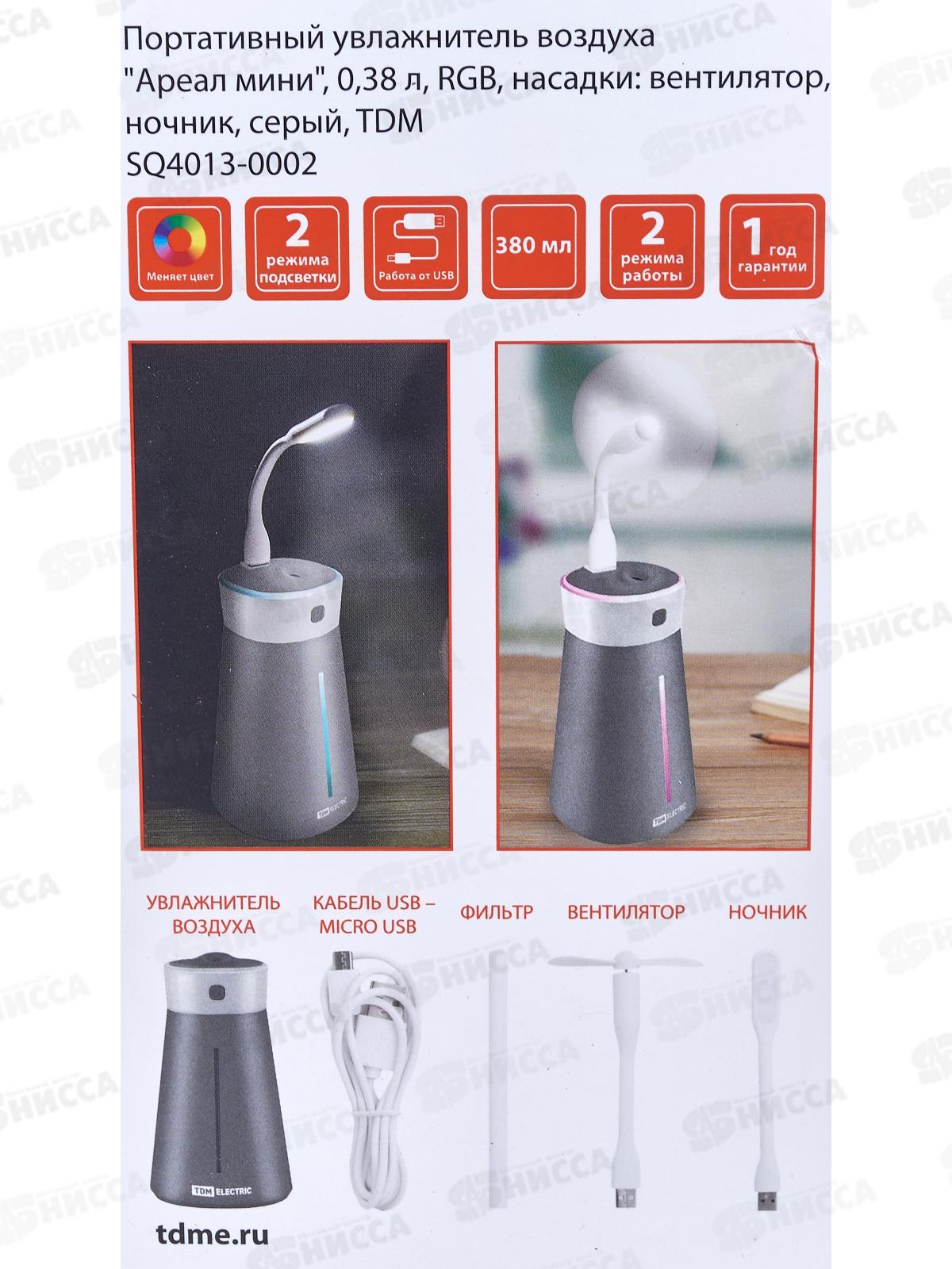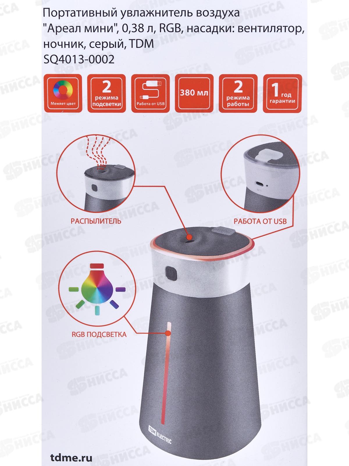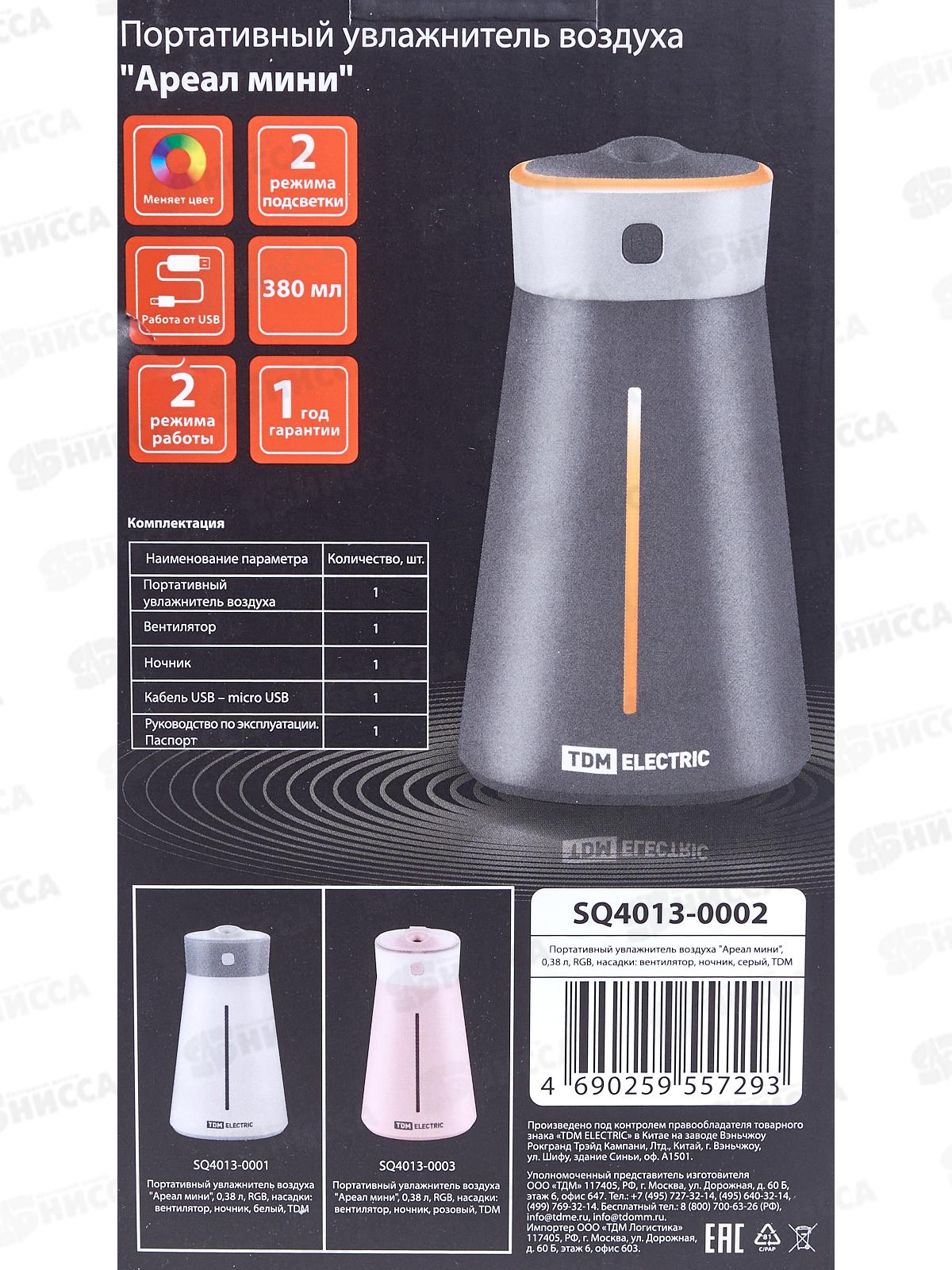 Увлажнитель воздуха TDM Ареал мини, 0.38л, RGB (вентилятор, ночник) серый