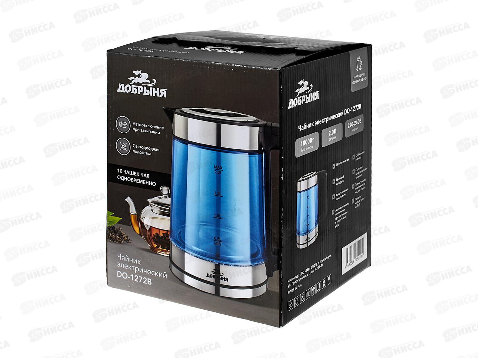 Чайник электрический DO-1272B 1800Вт 1,5л стекло нерж синий