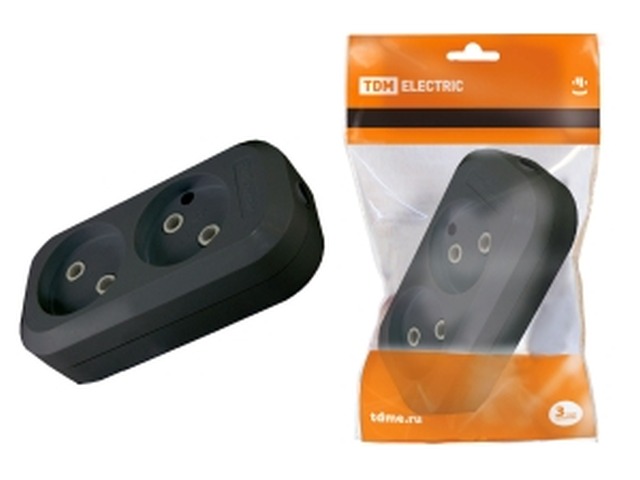 Колодка розетка TDM 2гнезда 2П без заземления 10А 250В черная, 0112 *20/160