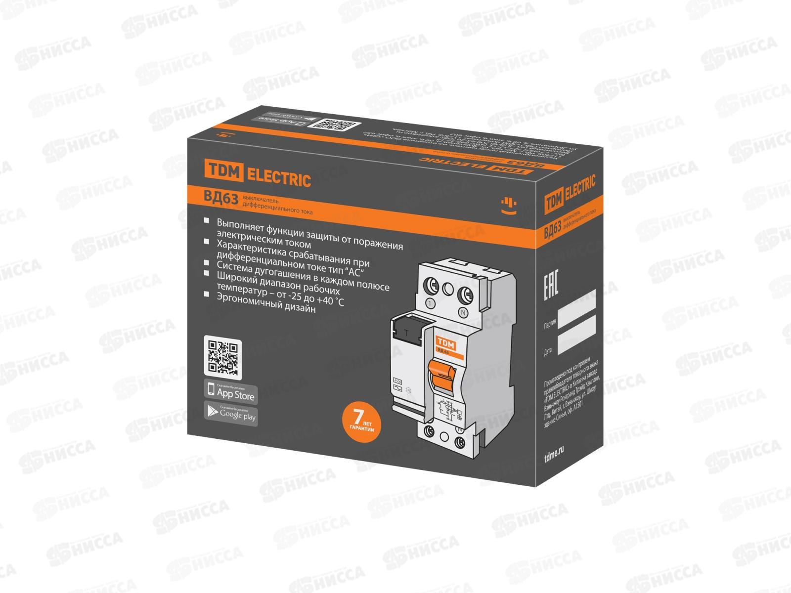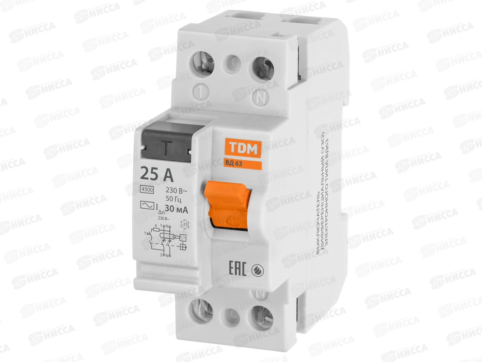 Устройство защитного отключения ВД63 2Р 25А 30мА (электронное) TDM, 0002