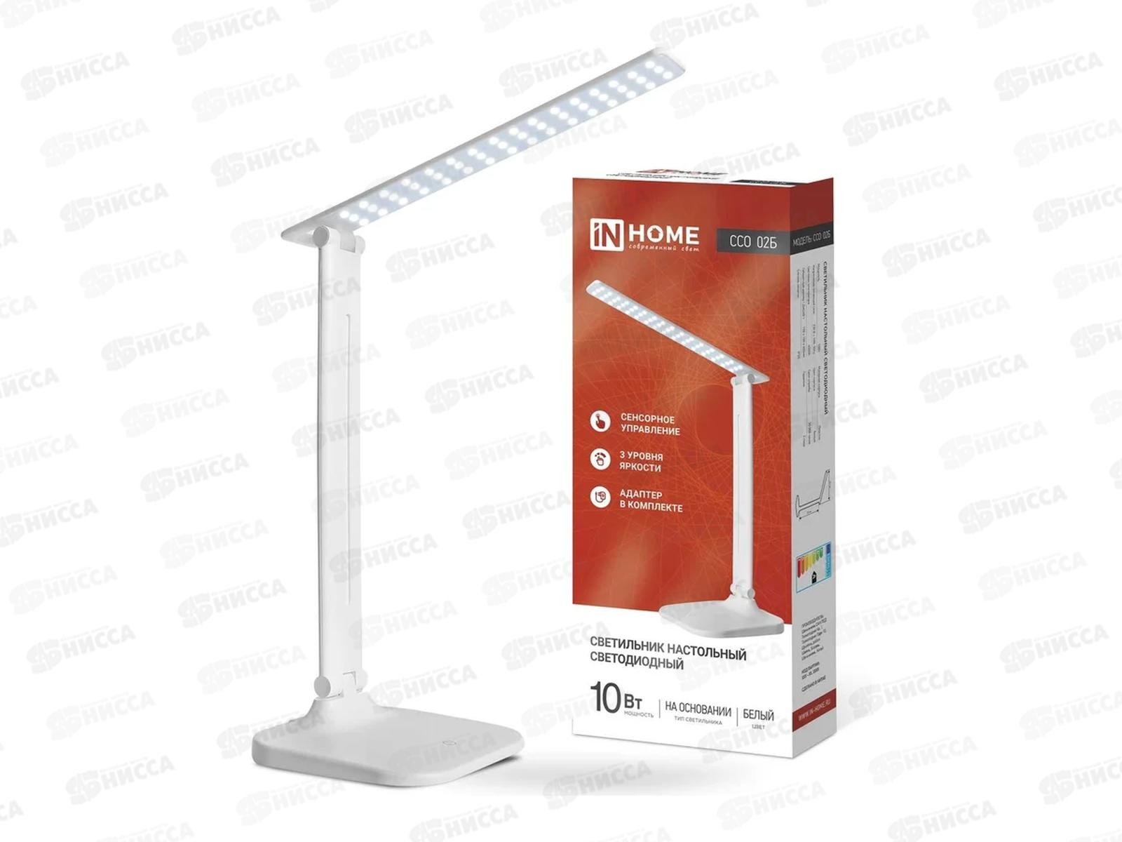 Лампа настольная светодиодная IN HOME ССО-02Б 10Вт сенсор-диммер адаптер белый