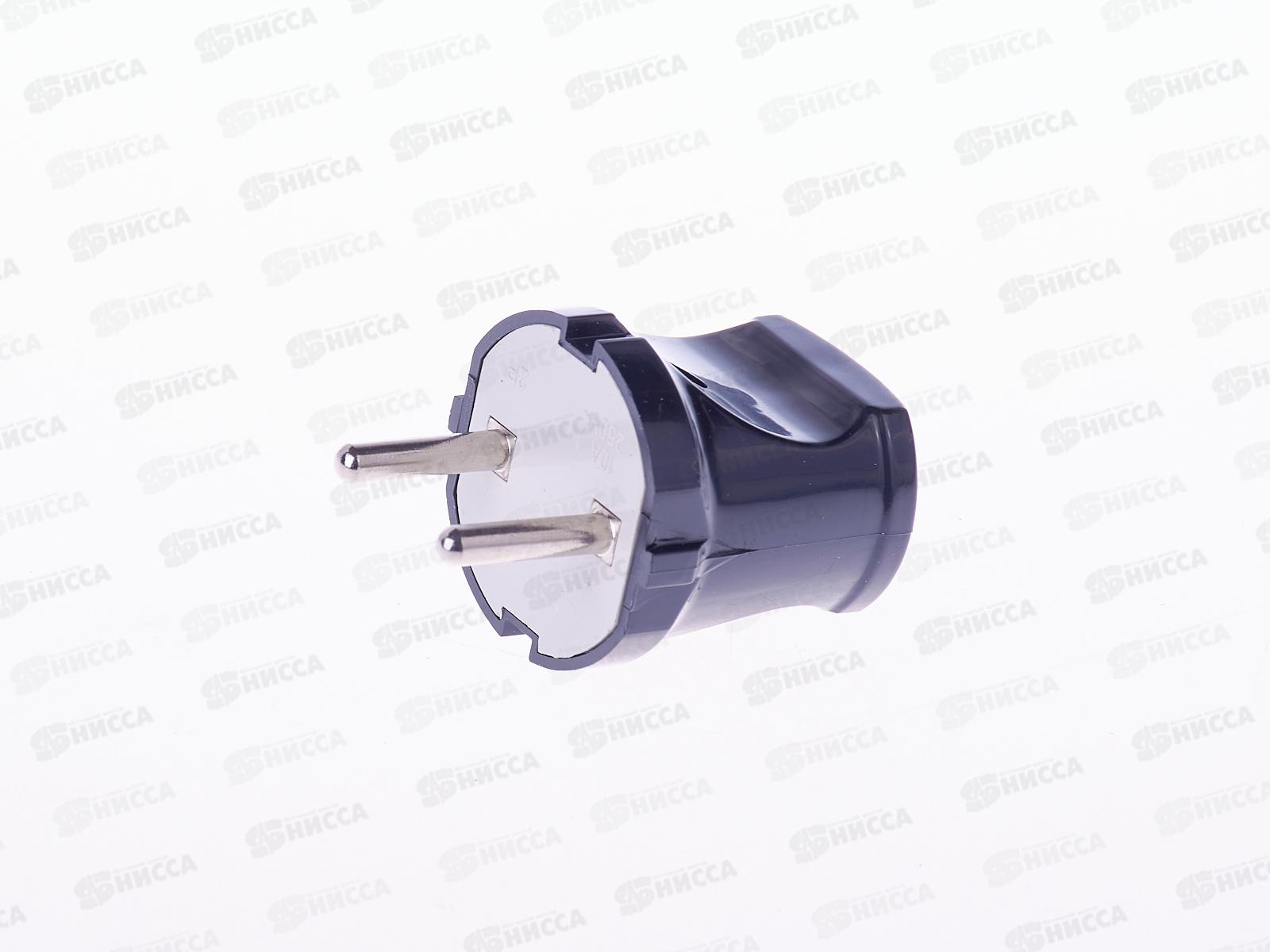 Вилка штепсельная ПРОГРЕСС прямая, без заземления, черная *50/500