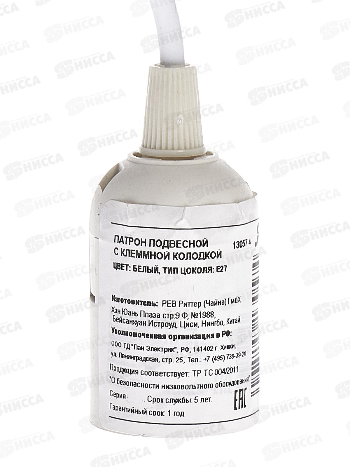 Электропатрон REV подвесной, Е27 ПВХ белый, для ремонтный работ с клеммами, 13057 *10