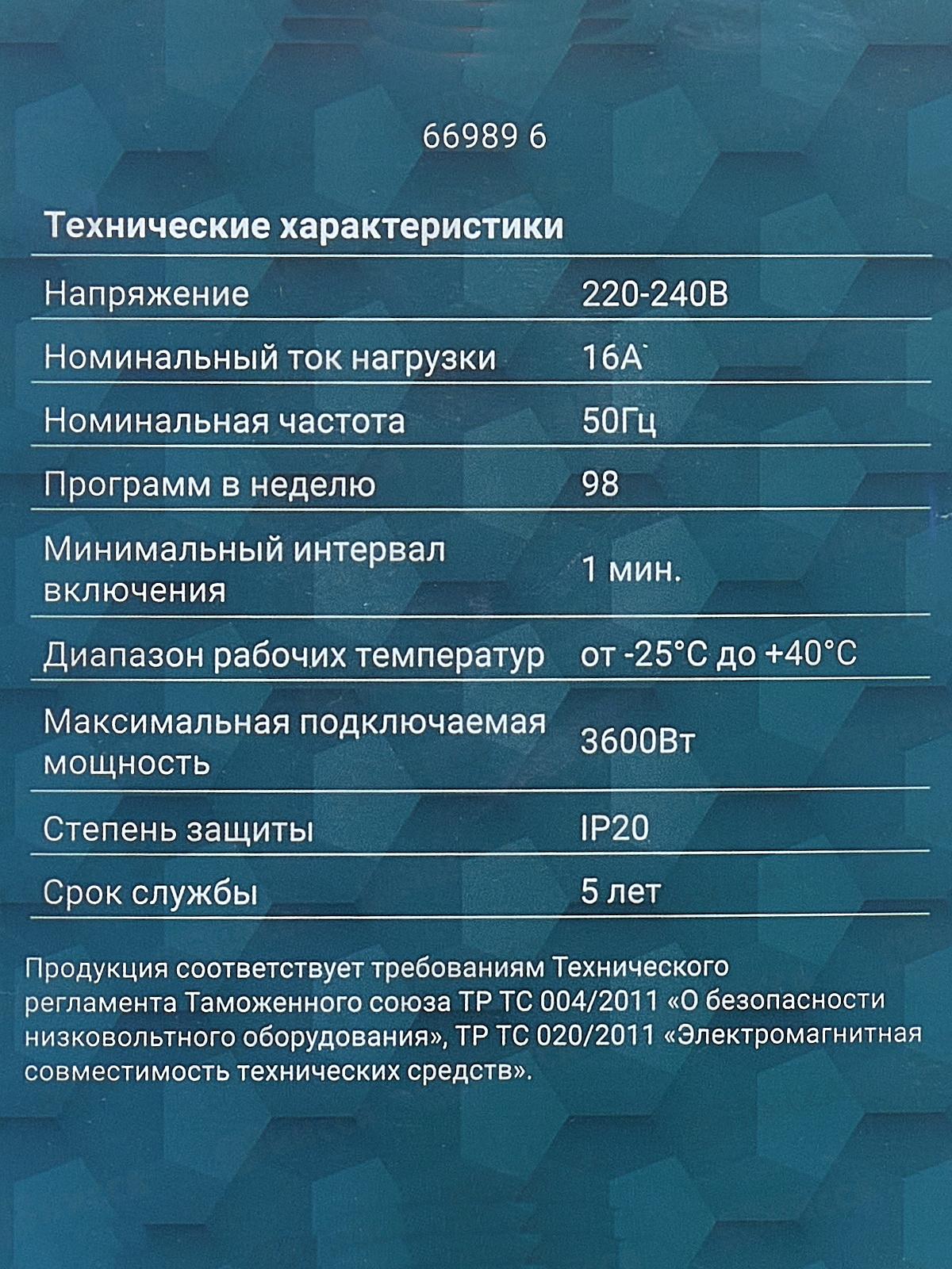 Таймер электронный, недельный. Инт: 20 вкл/сутки, белый 66989