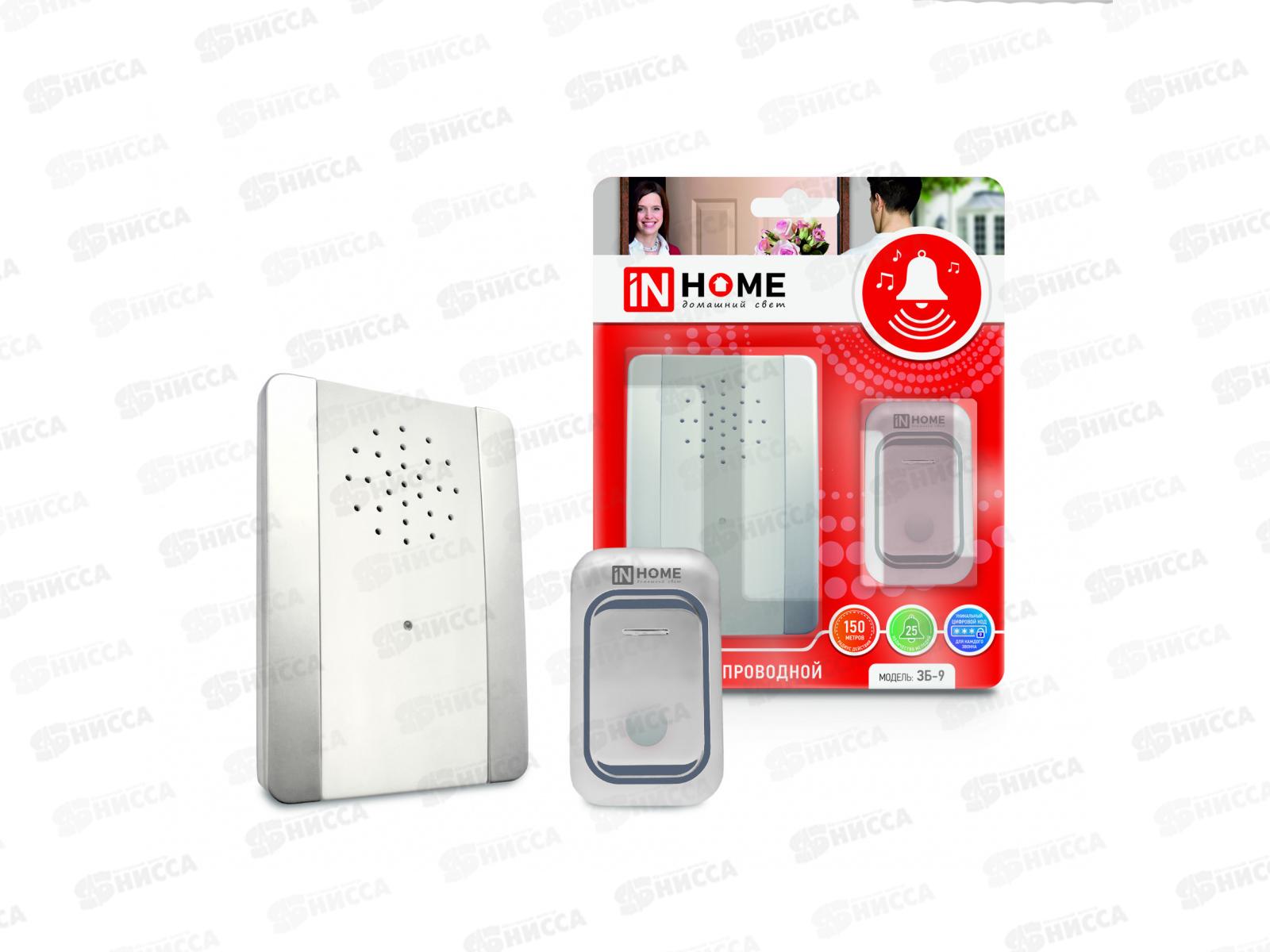Звонок беспроводной IN HOME 3Б-9 38мелодий 150м с кнопкой подсветкой серебро-белый