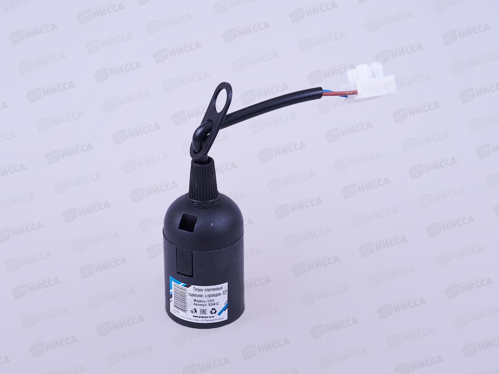 Электропатрон ПРОГРЕСС пластик подвесной с проводом, черный, E27 *50/200