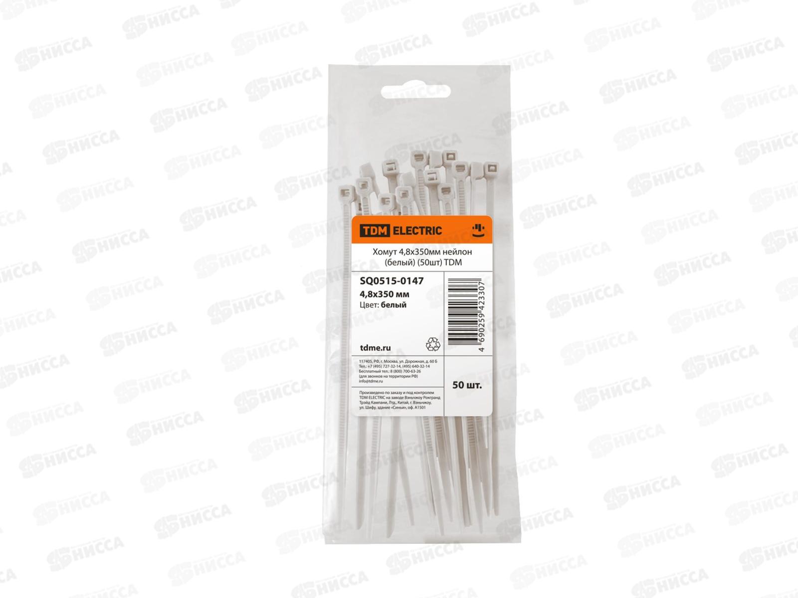 Хомут нейлон TDM 4.8*350мм 50шт белый, 0147 *20/80