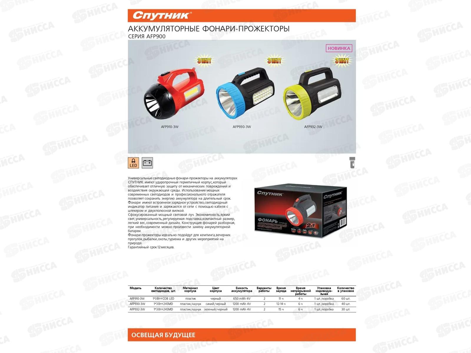 Фонарь СПУТНИК AFP930-3W аккум.