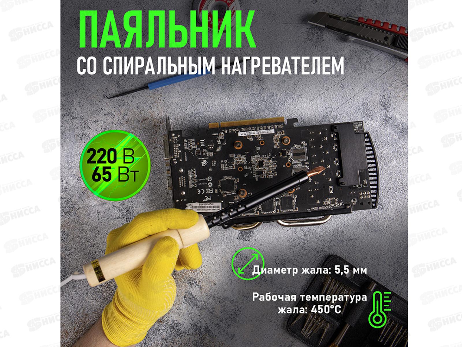 Паяльник электрический REXANT 65Вт, с деревянной ручкой, 12-0265 *100