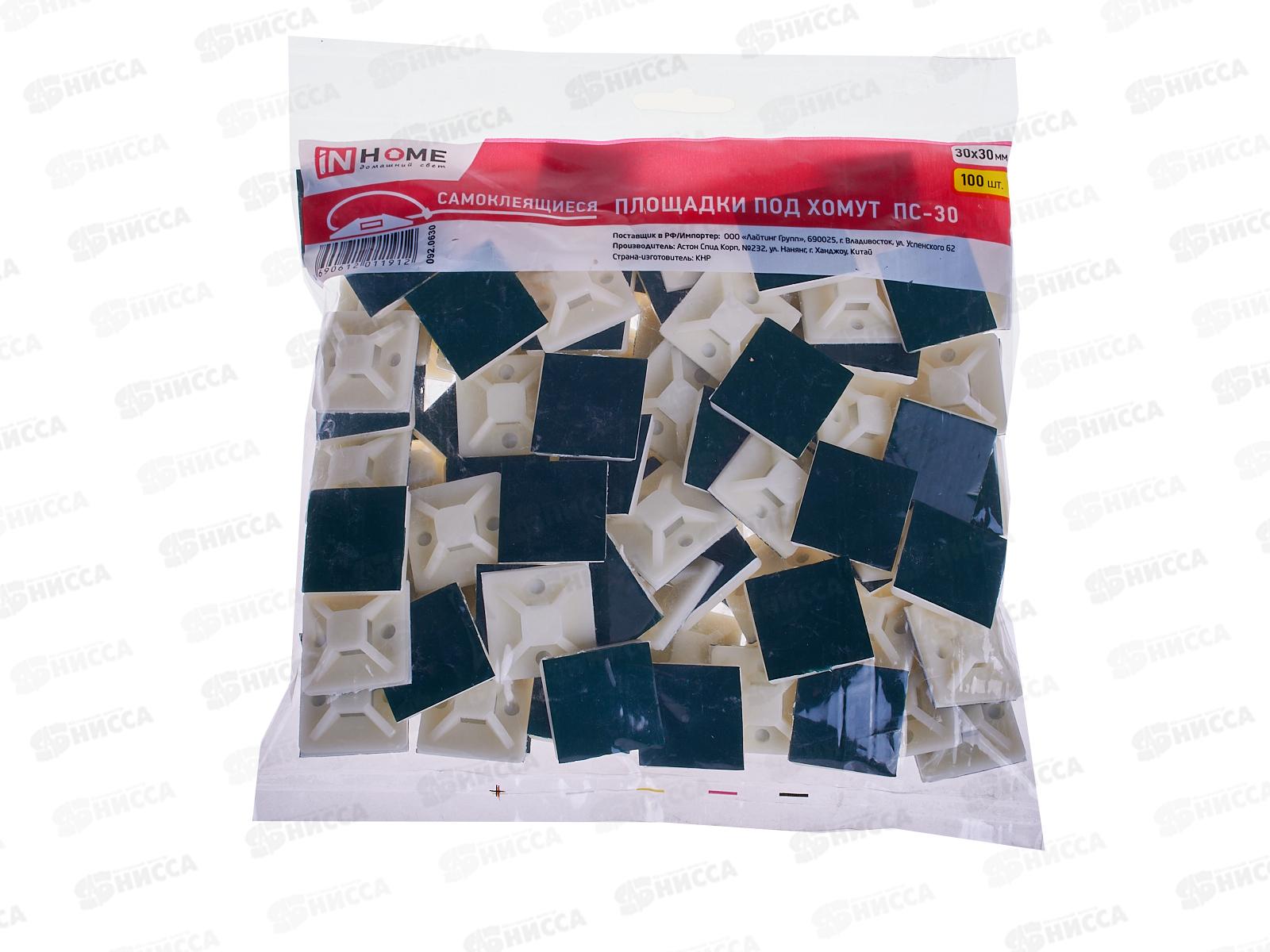 Площадка IN HOME E самоклеящаяся ПС-30, 30*30 под хомуты (100шт.упак.)