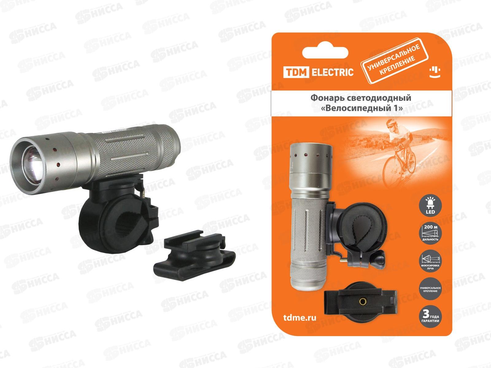 Фонарь TDM Велосипедный-1 светодиодный с креплениями, IP54, 1 LED 5Вт (CREE), 36 лм/Вт, 3*AAA *48