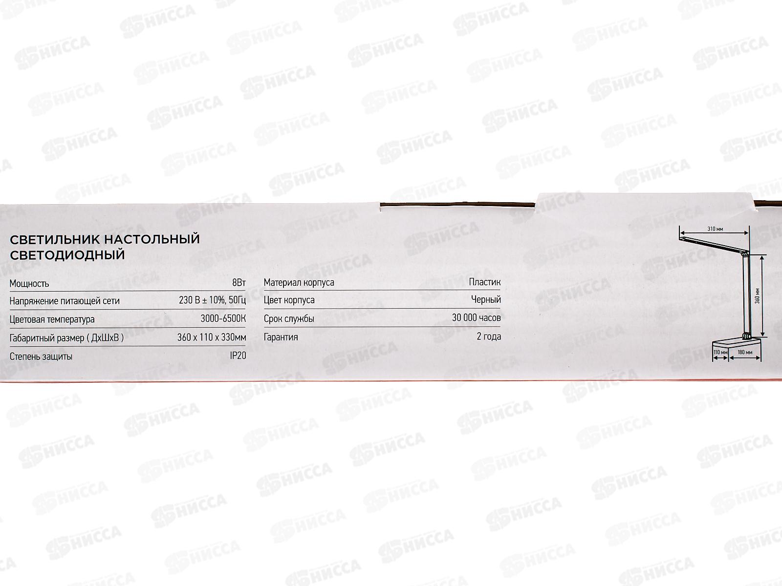 Лампа настольная светодиодная IN HOME ССО-14Ч 8Вт сенсор-адаптер черный