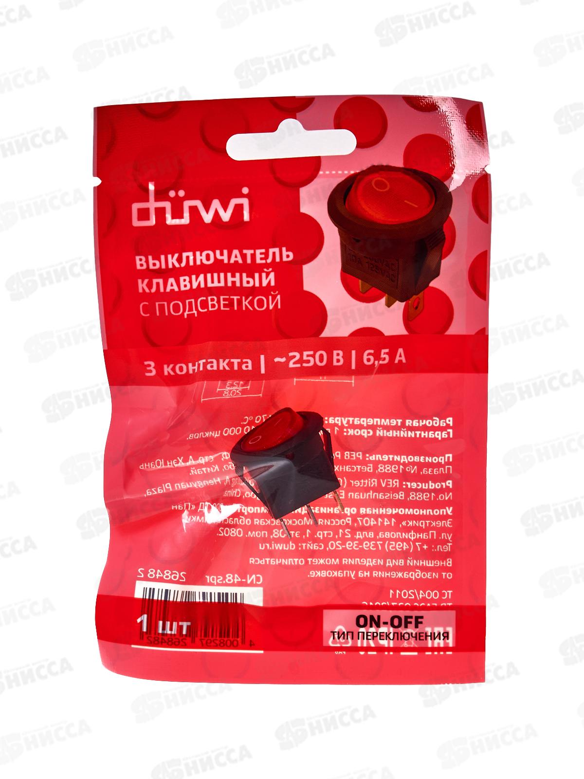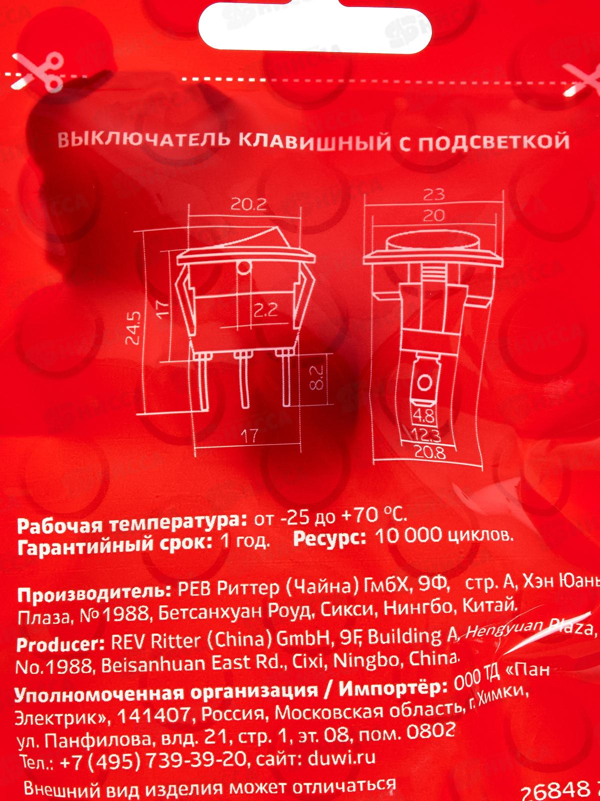 Выключатель клавишный красный с подсветкой ВКЛ-ВЫКЛ 3контакта 250В 6,5А круглый 26848 2