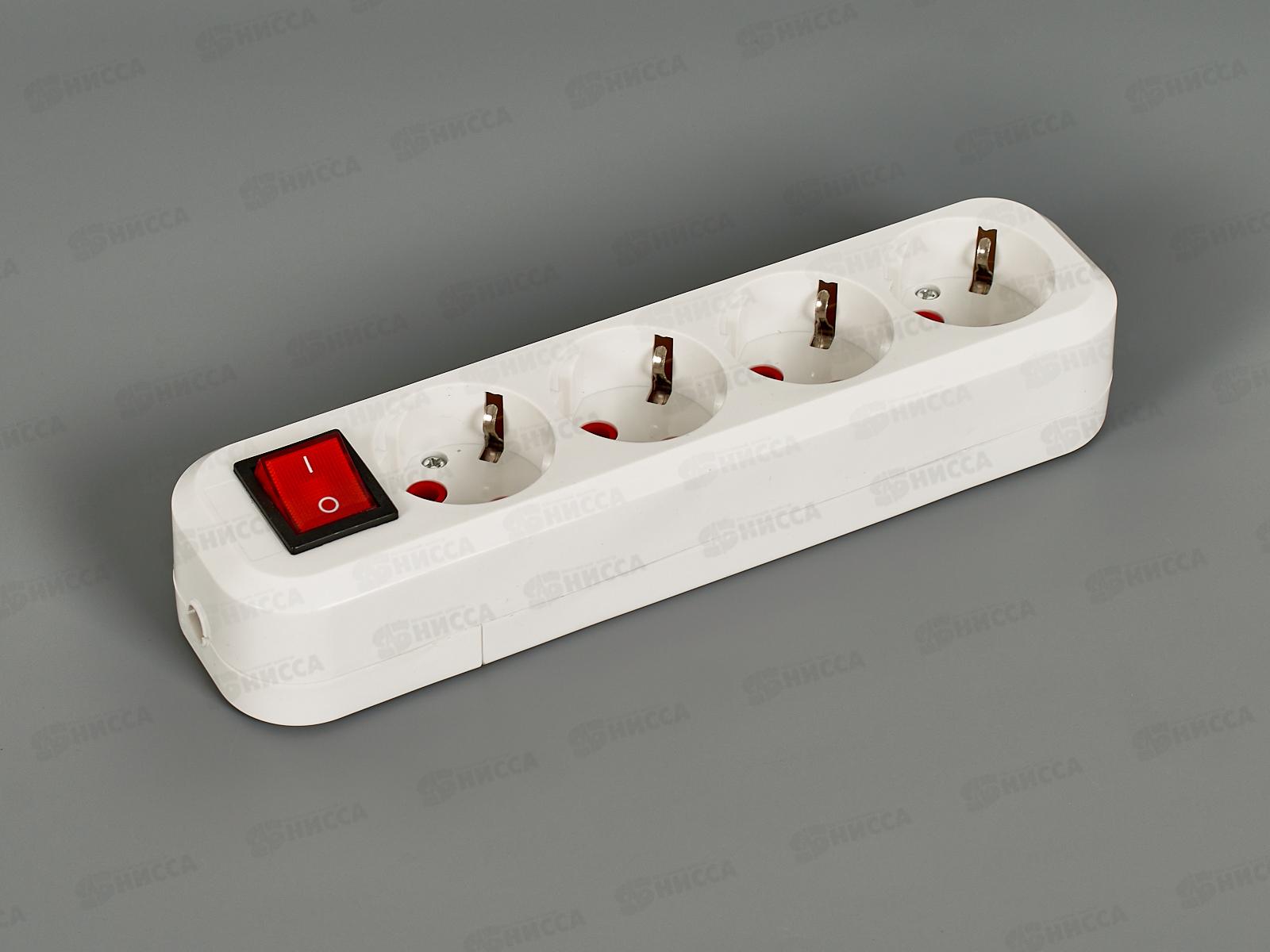 Колодка ПРОГРЕСС с заземлением 4 розетки с выключателем, белая *10/50