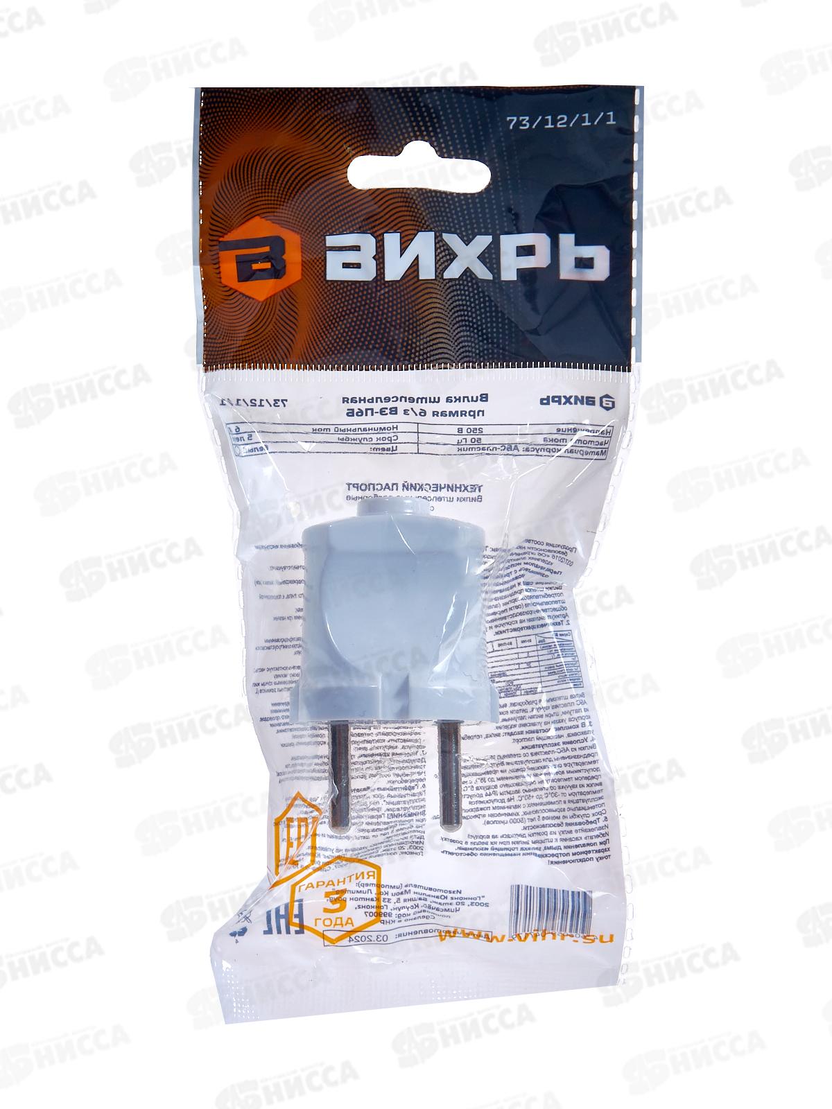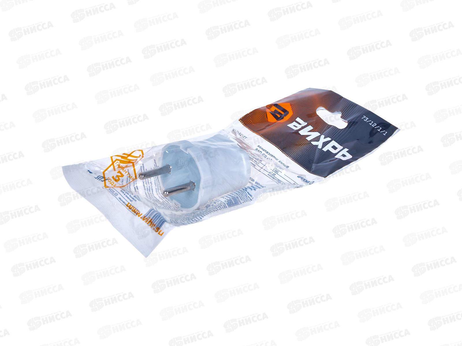Вилка прямая без заземления белая 6А 250В Вихрь 73/12/1/1