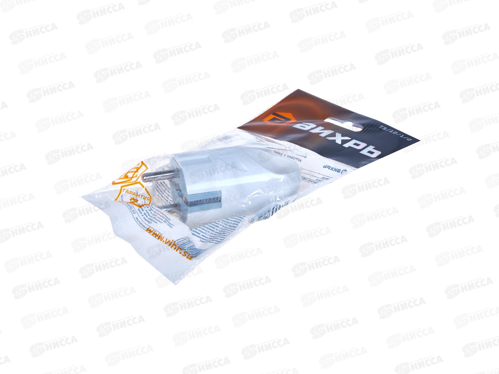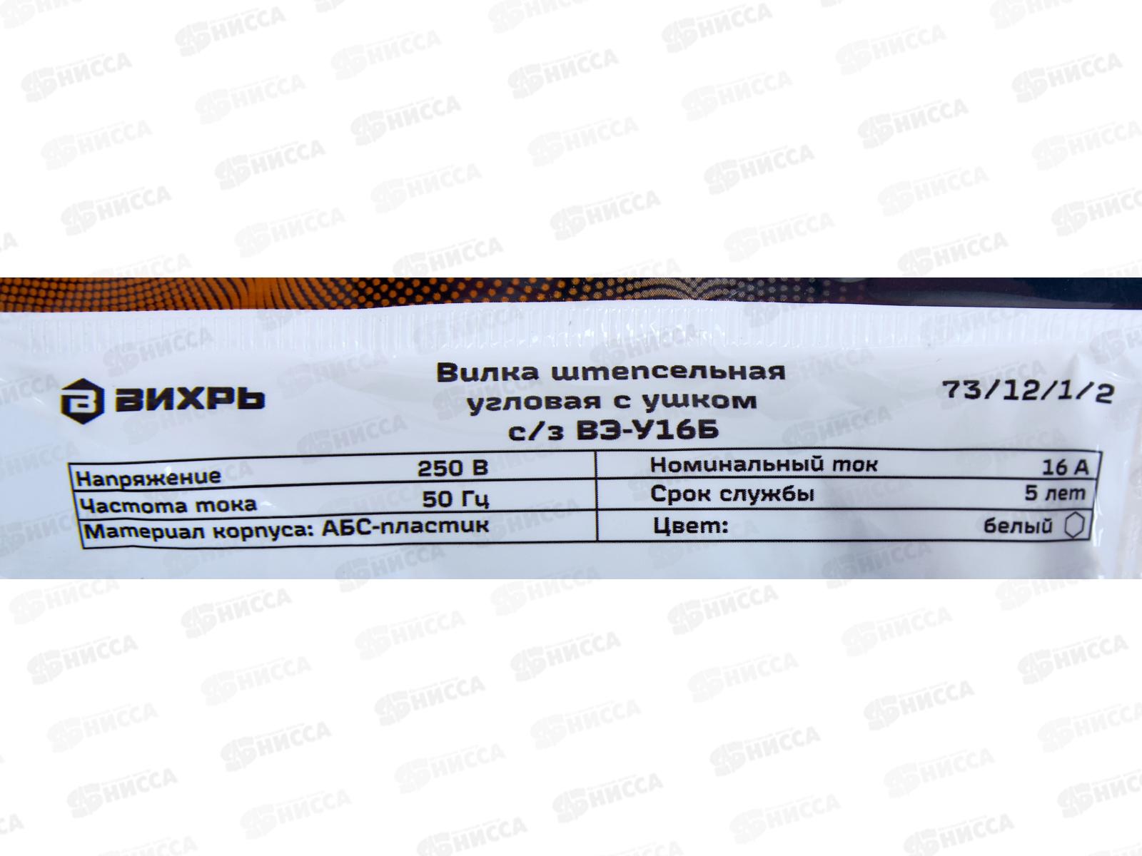 Вилка угловая с ушком с заземлением белая 16A 250B Вихрь 73/12/1/2