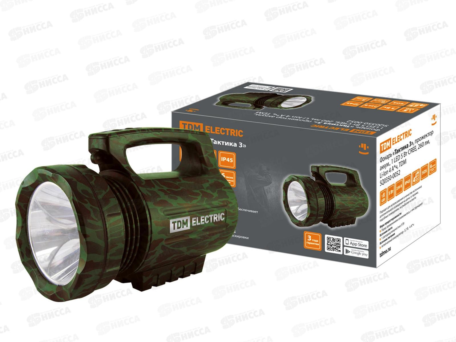 Фонарь TDM Тактика-3, прожектор аккумулятор 1 Led 5Вт CREE 260лм 0052