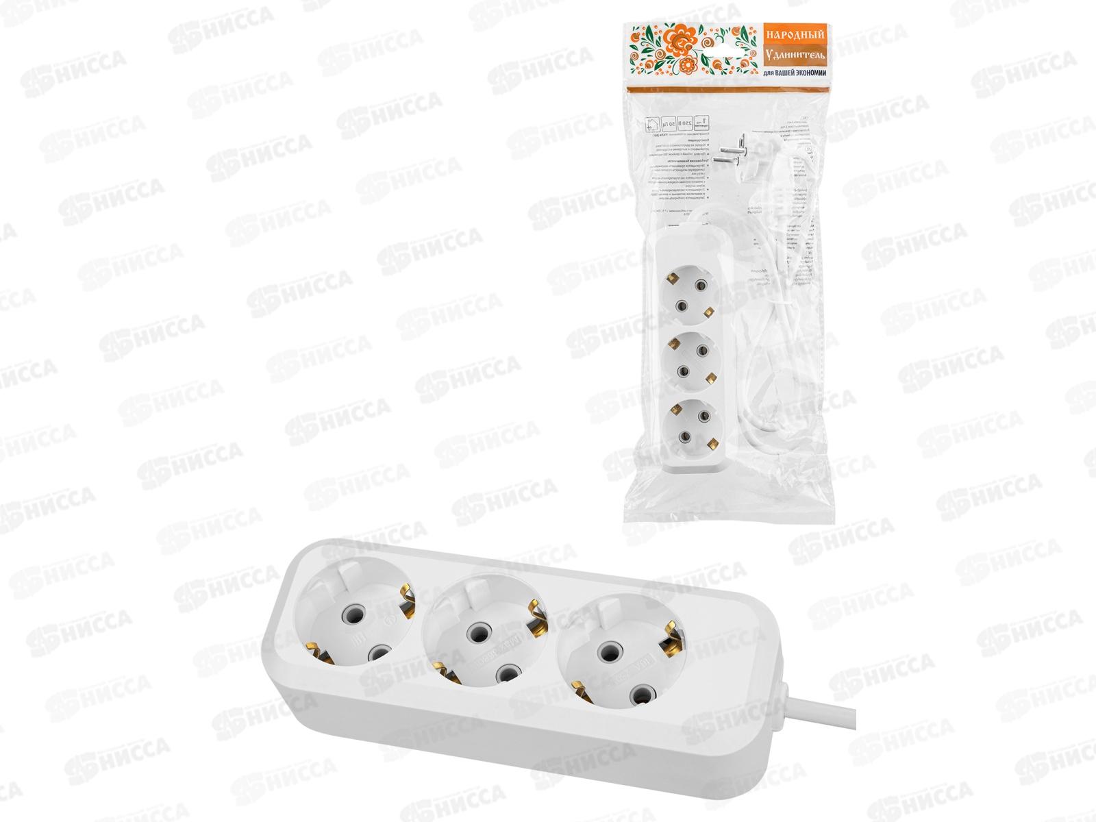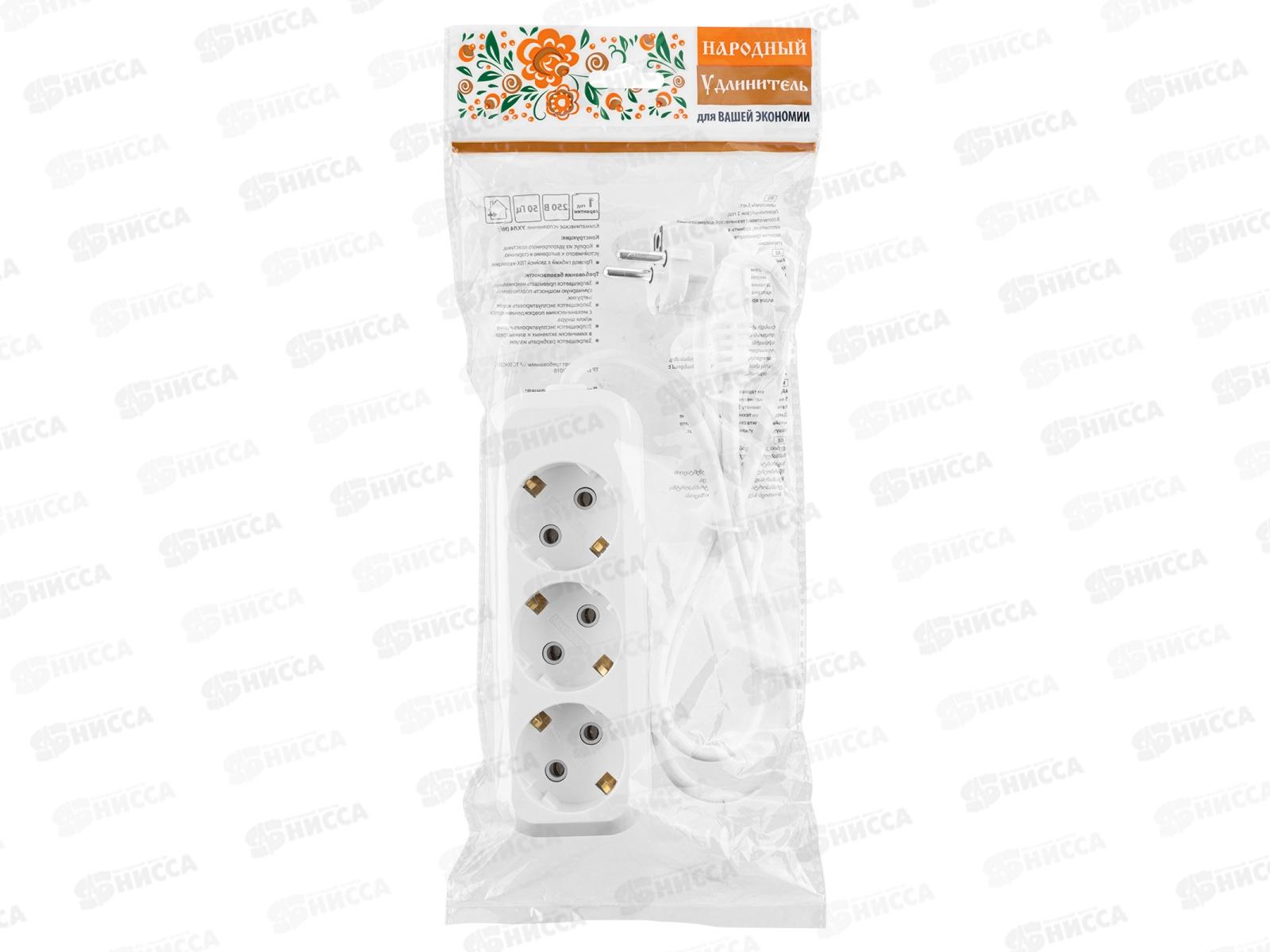 Удлинитель 3 гнезда, 7 метров, без заземления, 10 А, 2300 Вт, белый, Народный 1313 *34